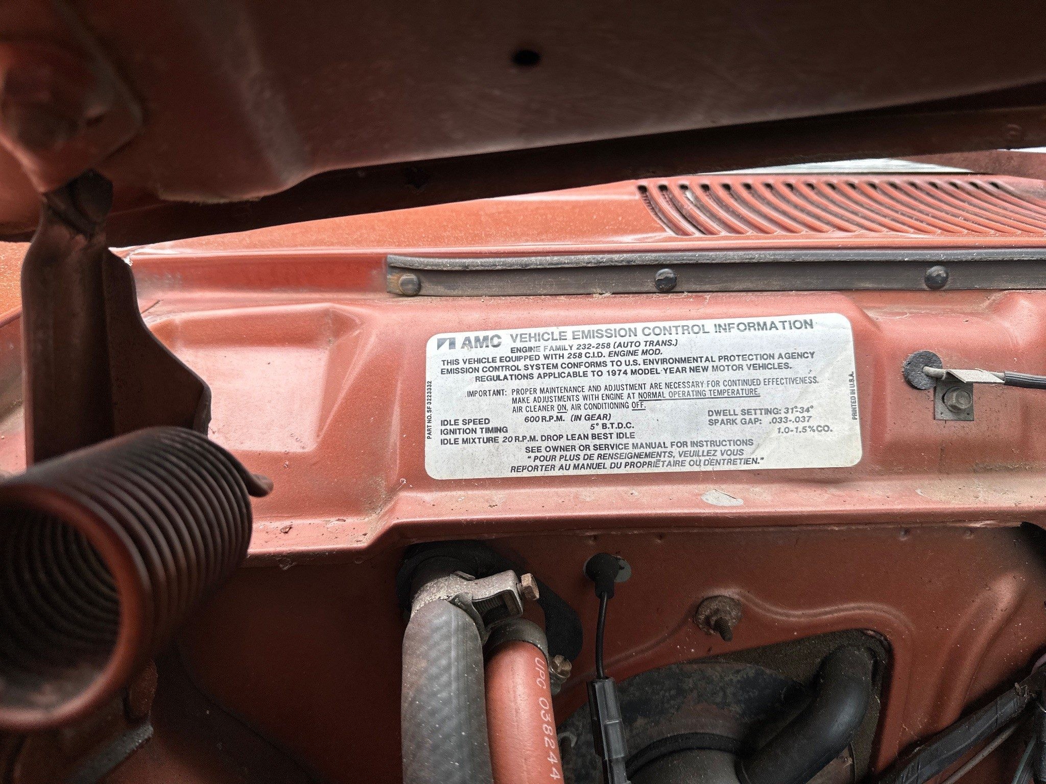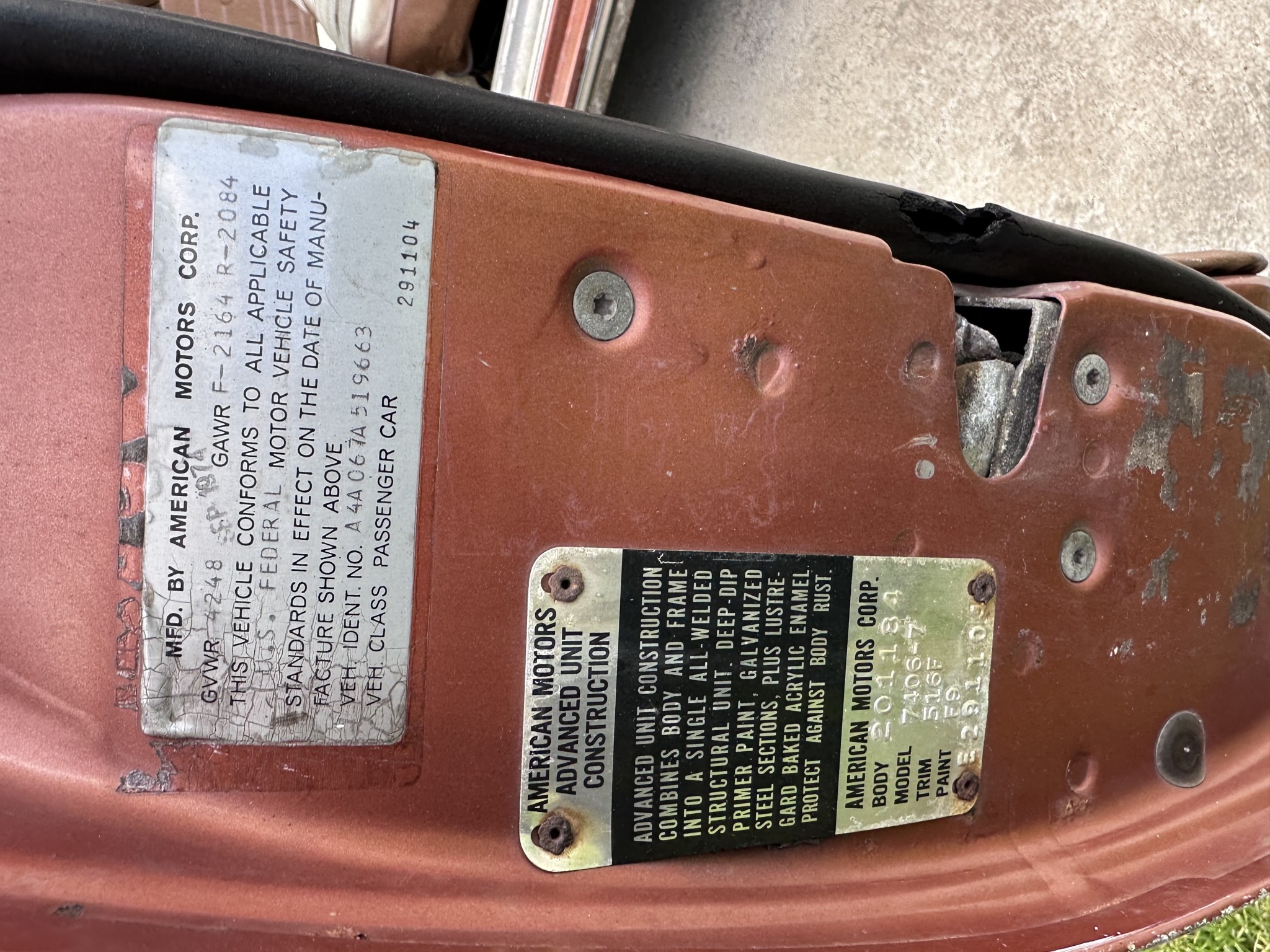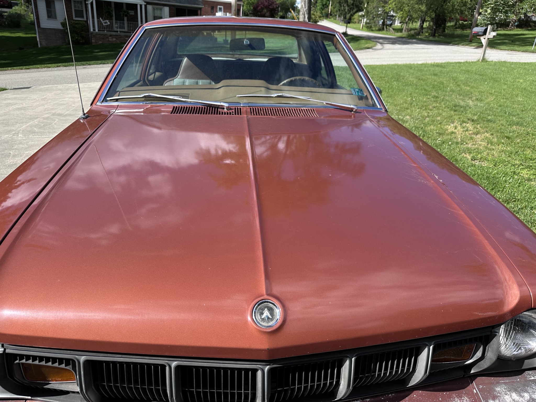 Interesting that it has the 1973 horn assembly. My 74 has the AMC logo in red,white and blue. Must be a steering wheel replacement as that is the wheel assembly for the “X” package.
