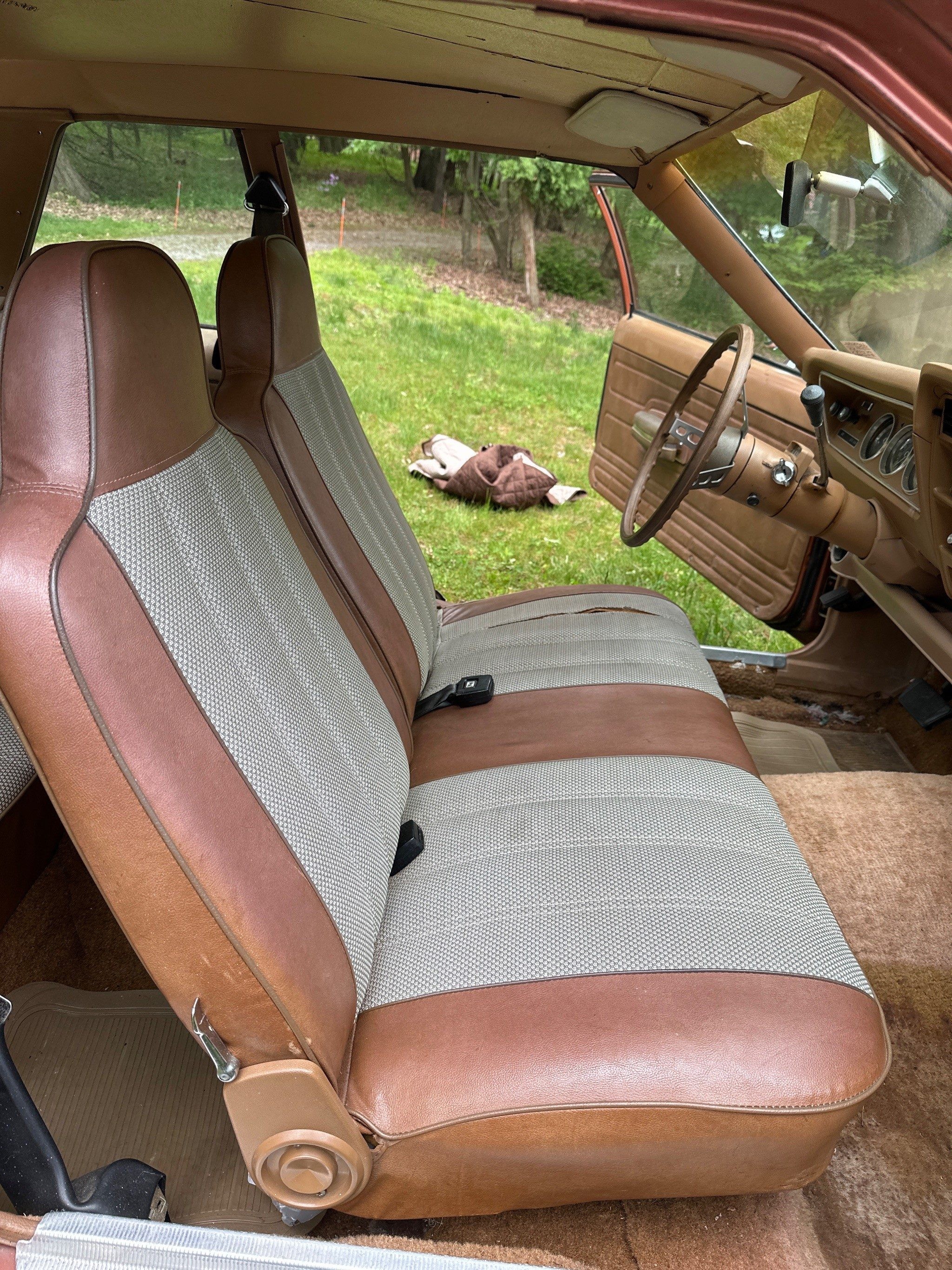 The interior is also in very nice shape (but not perfect). There’s a tear in a seam on the driver’s side of the big bench seat, and the carpet has seen a few heels in its day, but the seller will throw in a brand new carpet, in addition to some “really nice emblems” and “an almost perfect front bumper.” And how about that steering wheel? It was a Hornet option (and it looks great).