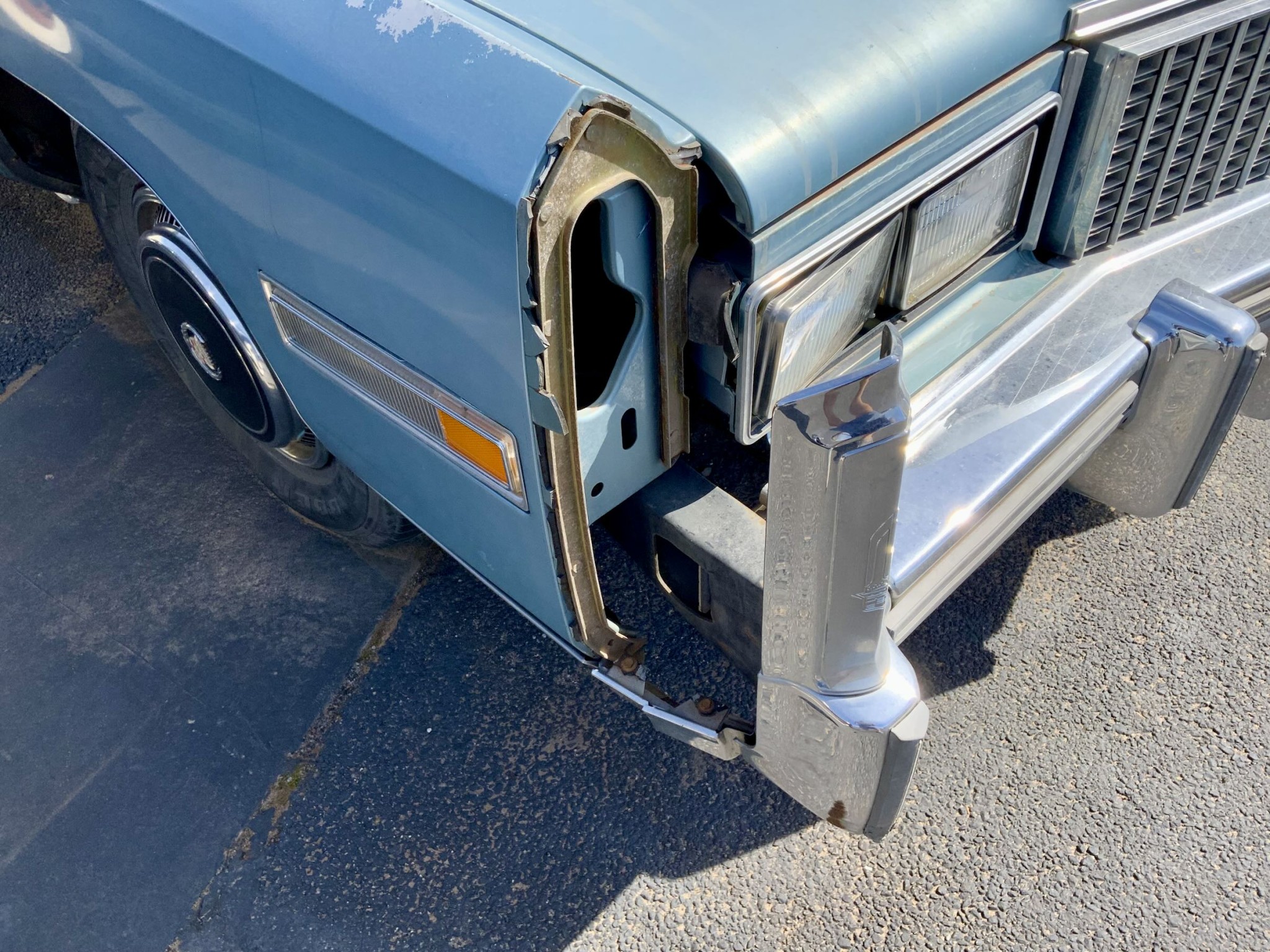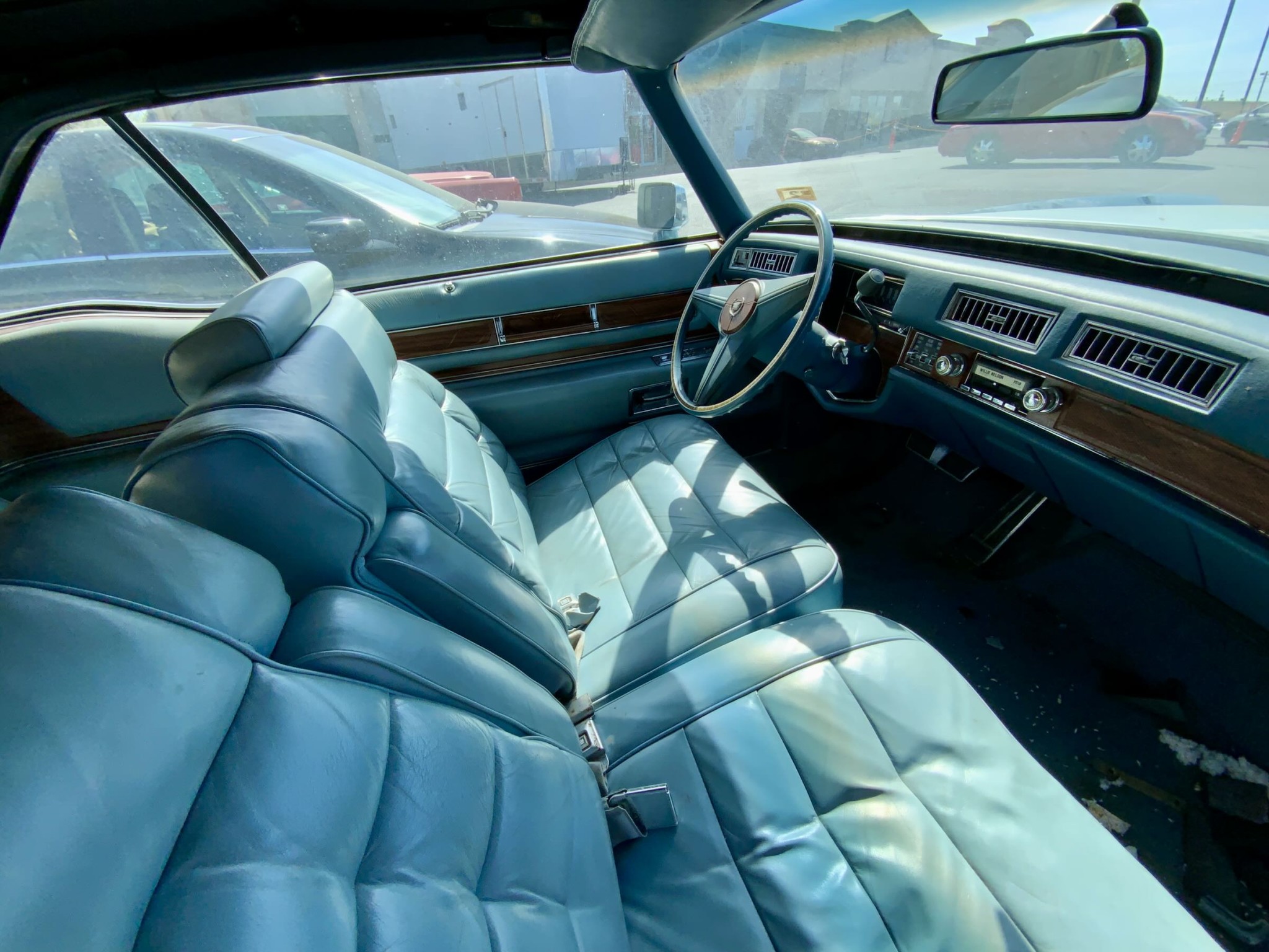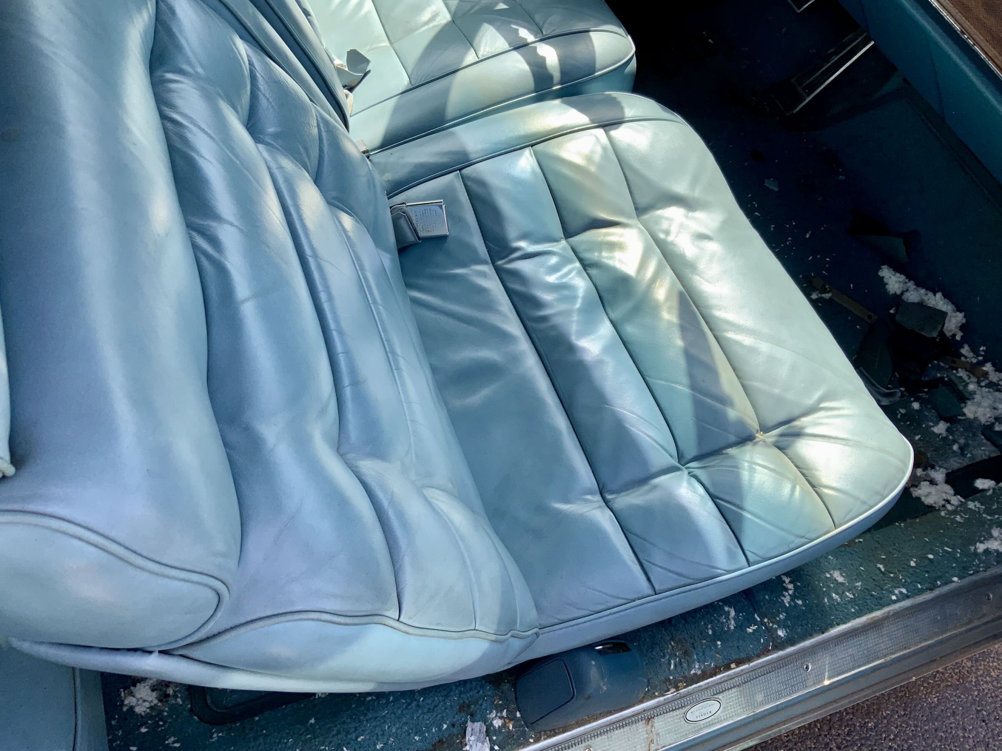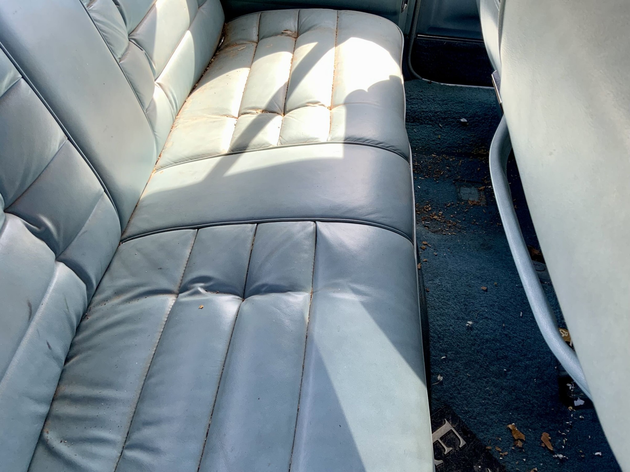 This Caddy looks like a good solid starting point. This has got to be the original paint. It’s been mentioned on Barnfinds before, by others and myself about certain colors, silver especially, but this shade of blue on GM cars doing exactly what you see here. Thats why when I see either silver or this color thats original and still looks good It’s very impressive to me. My ’77 Olds Delta 88 was this color, I bought it when it was 10 years old used and it was a fight to get the paint decent. But at least it stayed on the car. I hope this one gets restored, the interior is a big ticket item if you can save it. And if its a matter of replacing the fillers and just prep work, with no major dents, or rust to deal with, that wouldn’t be too bad either. This Caddy is very restorable. And at that low mileage that 500 is barely broken in.
