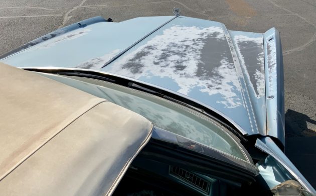 WOW, the paint that hasn’t fallen off the car already is totally dead and ready to let go. Touching up this paint fell off the list of possibilities years ago. Lol… A new top and new paint will do wonders for this car. I hope it finds a good home.