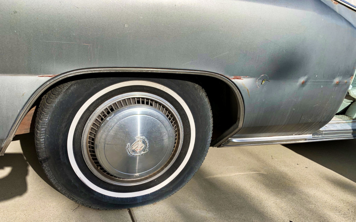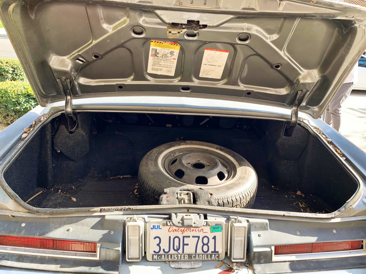 It appears that someone started to fix this big Caddy up. The bumper fillers have already been replaced, but need to be painted, and the side trim has been removed from the passenger side. It looks like there’s a dent in the rear fender, which likely why the trim was removed. These cars still popup in our local pick-and-pull yards, so it shouldn’t be difficult finding parts for it.