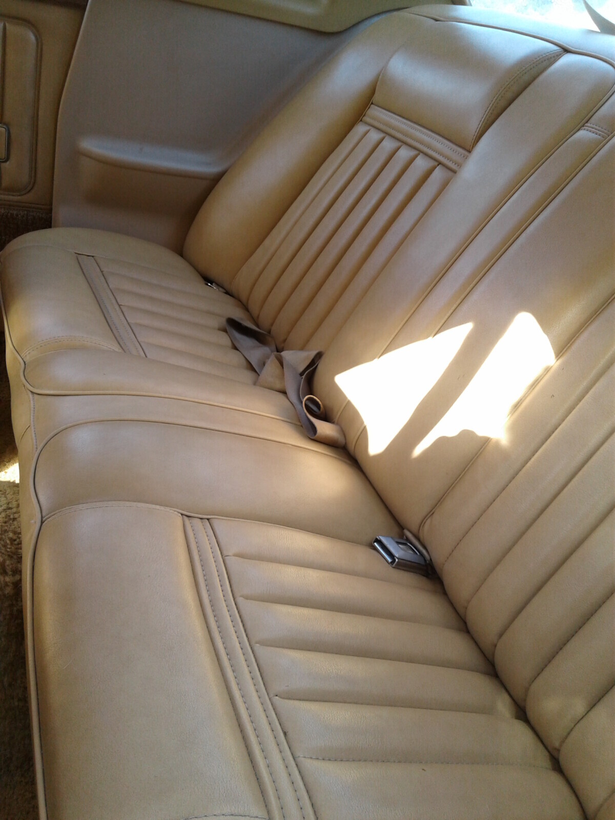 I was surprised to find one of these locally on Craigslist, in white but no vinyl top, with a factory 4 speed popping up through the plush carpet– with seats just like this one. Someone snapped it up before I could go take a look. That would have been a fun car.