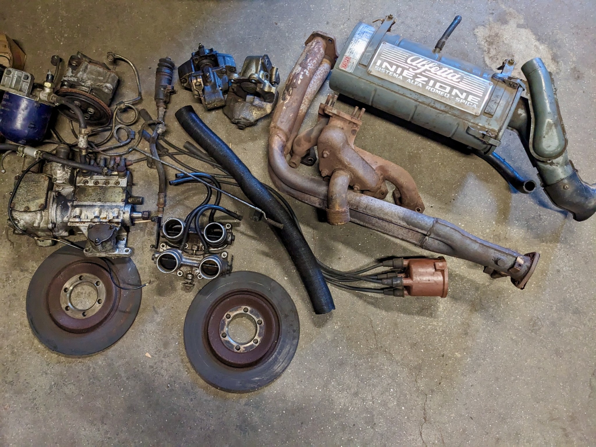 Being a Sprint Veloce means that this Alfetta received the 2.0-liter twin-cam inline-4, which was rated at 130 horsepower. It was equipped with SPICA mechanical fuel injection and was paired to a 5-speed manual transaxle. The fuel injection system is fantastic when in good working order, but given the car’s 46-year-old age, switching to carbs was likely the best option for getting it running again. The seller also replaced the distributor with a 123ignition unit and performed a complete tune-up. They also added a wideband O2 sensor to tune the fuel mixture, making it a much simpler task to keep it dialed in.