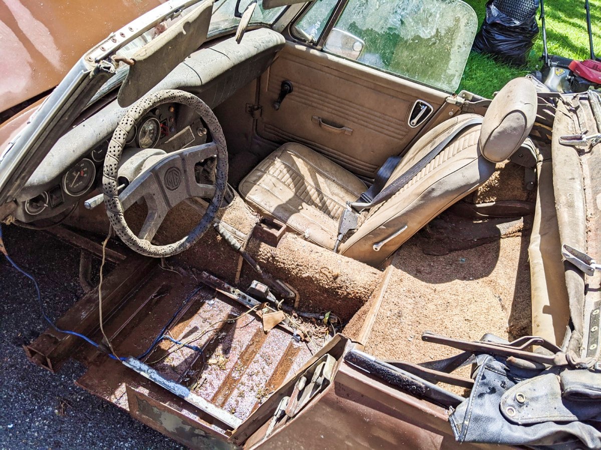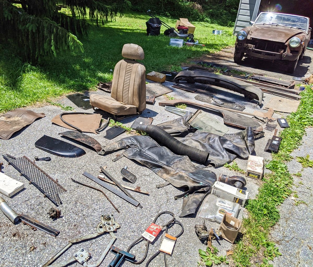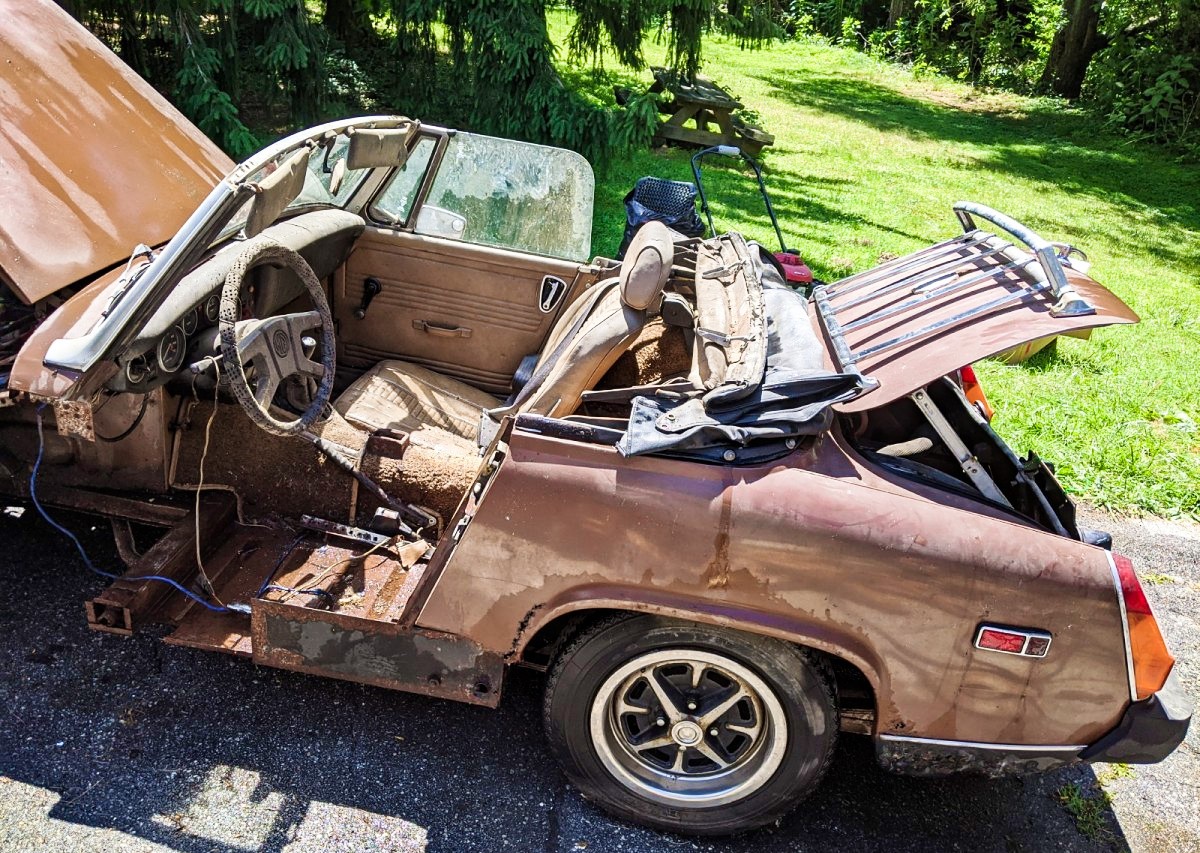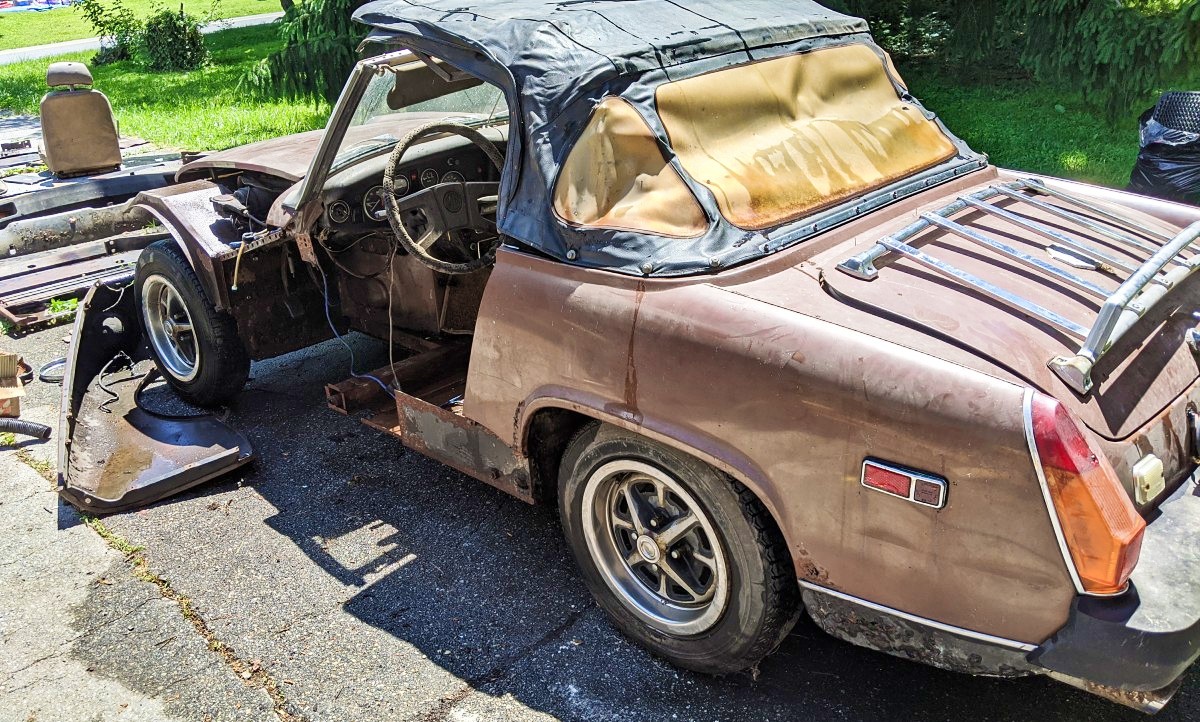 as stated, when you get all done with all those replacement parts, welding, painting, powder coating, upholstery, etc., ad naseum, you have a rubber bumper Midget with a Triumph engine. NO one wants these cars . . . . sorry to be blunt. A Club member bought one of these new, has kept it in perfect condition, very low mileage . . . looks like a new car. She has been trying to sell it for years, for something like $8500, and has had no takers. If she can’t sell hers for anywhere near $8K, good bleepin’ luck with this pile.