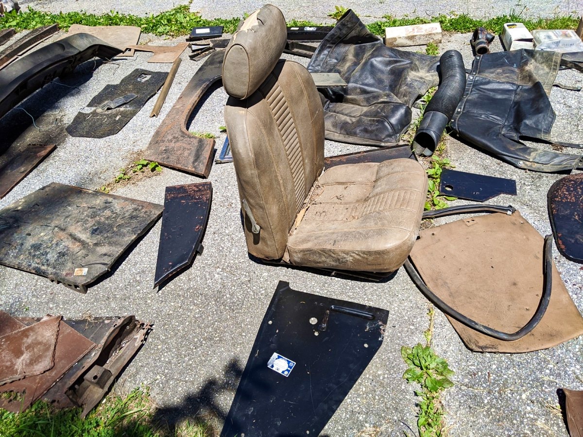 As you can see, there’s a lot of work to be done here. Rust was an issue when the seller purchased it, so they purchased a number of replacement parts to fix it, which are included with the car.
