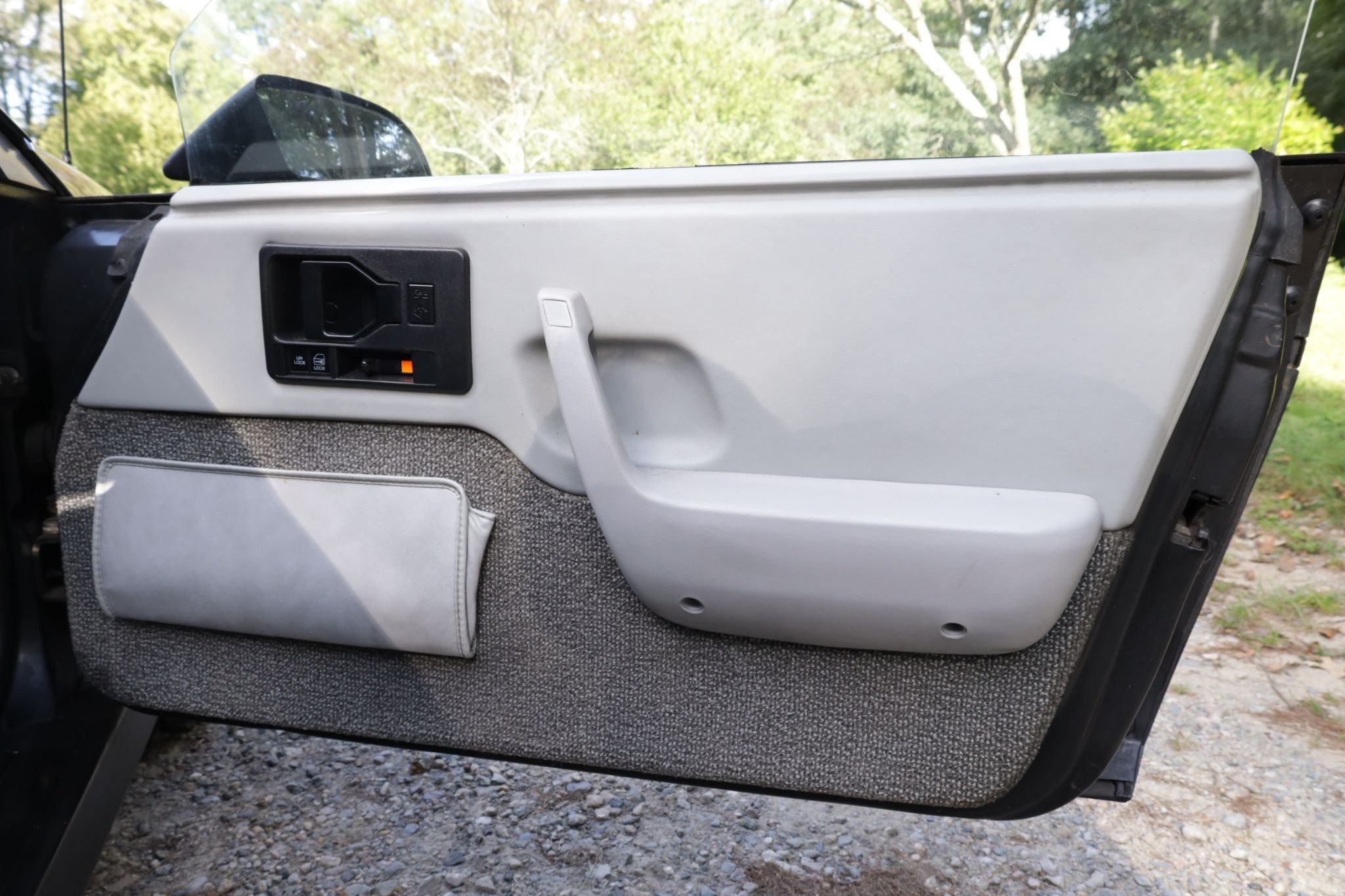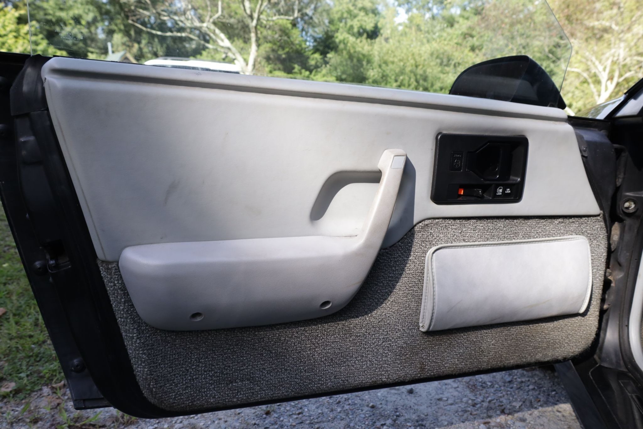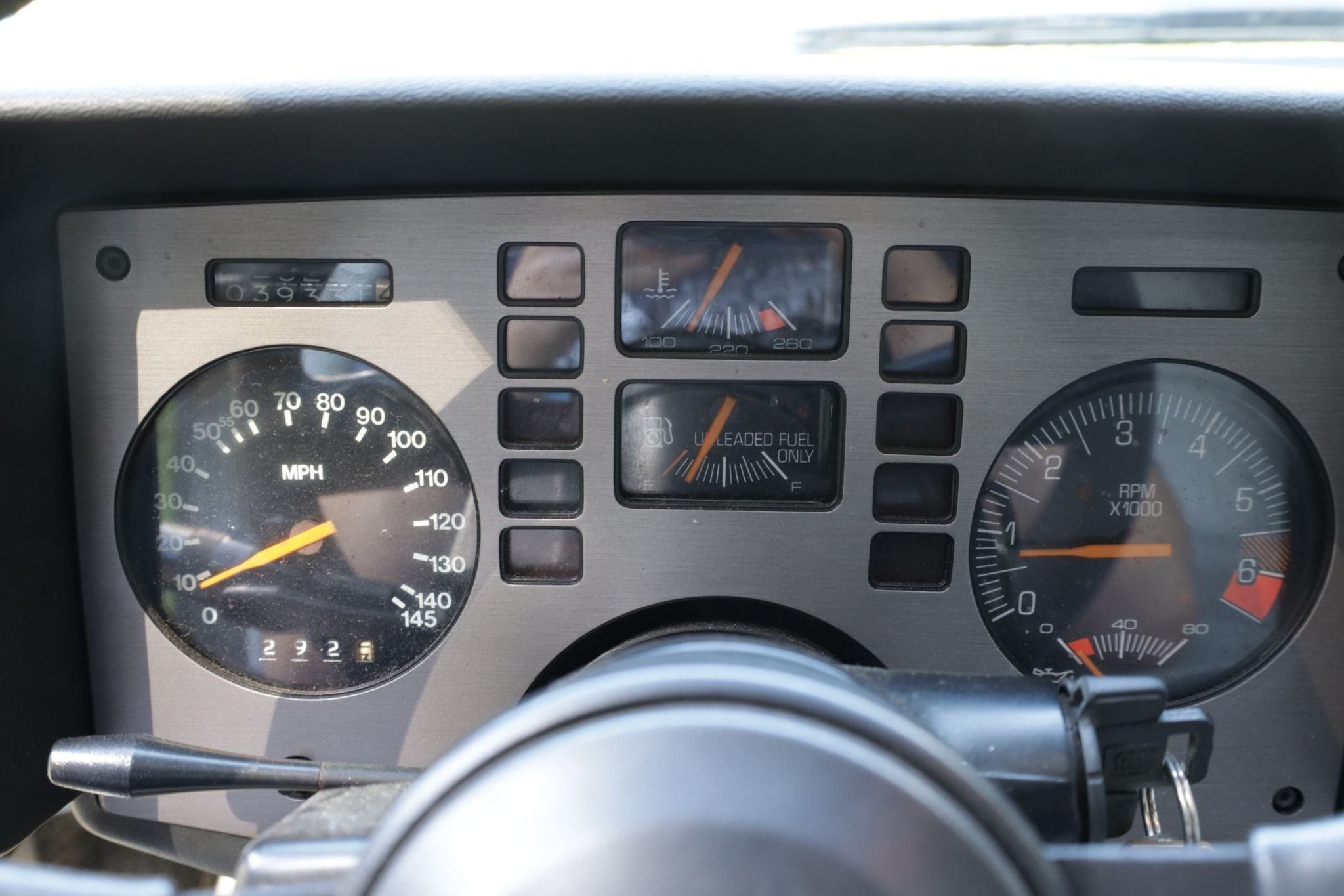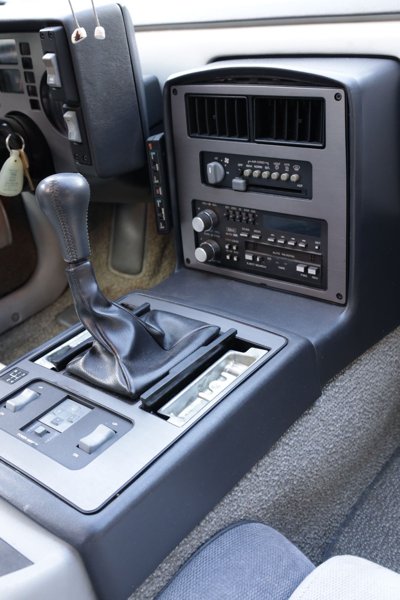 The interior is described as original and clean, retaining period details including a police scanner installed by the original owner in 1985. While the seller has never tested the scanner, it adds a unique bit of character to the car. The power windows and sunroof are functional, and the seller notes the sunroof does not leak. Power locks were not optioned.