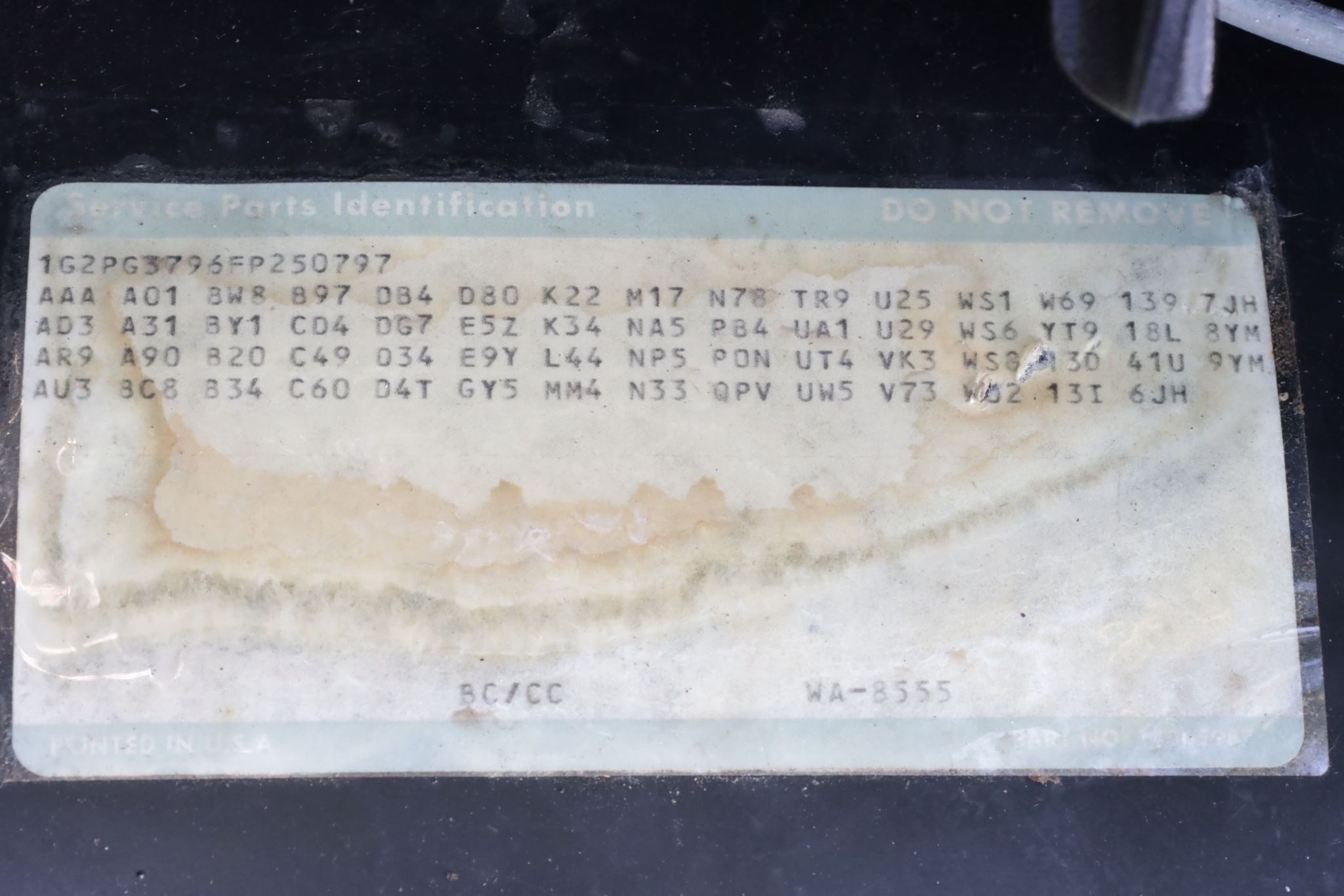 - Chassis #: 1G2PG3796FP250797