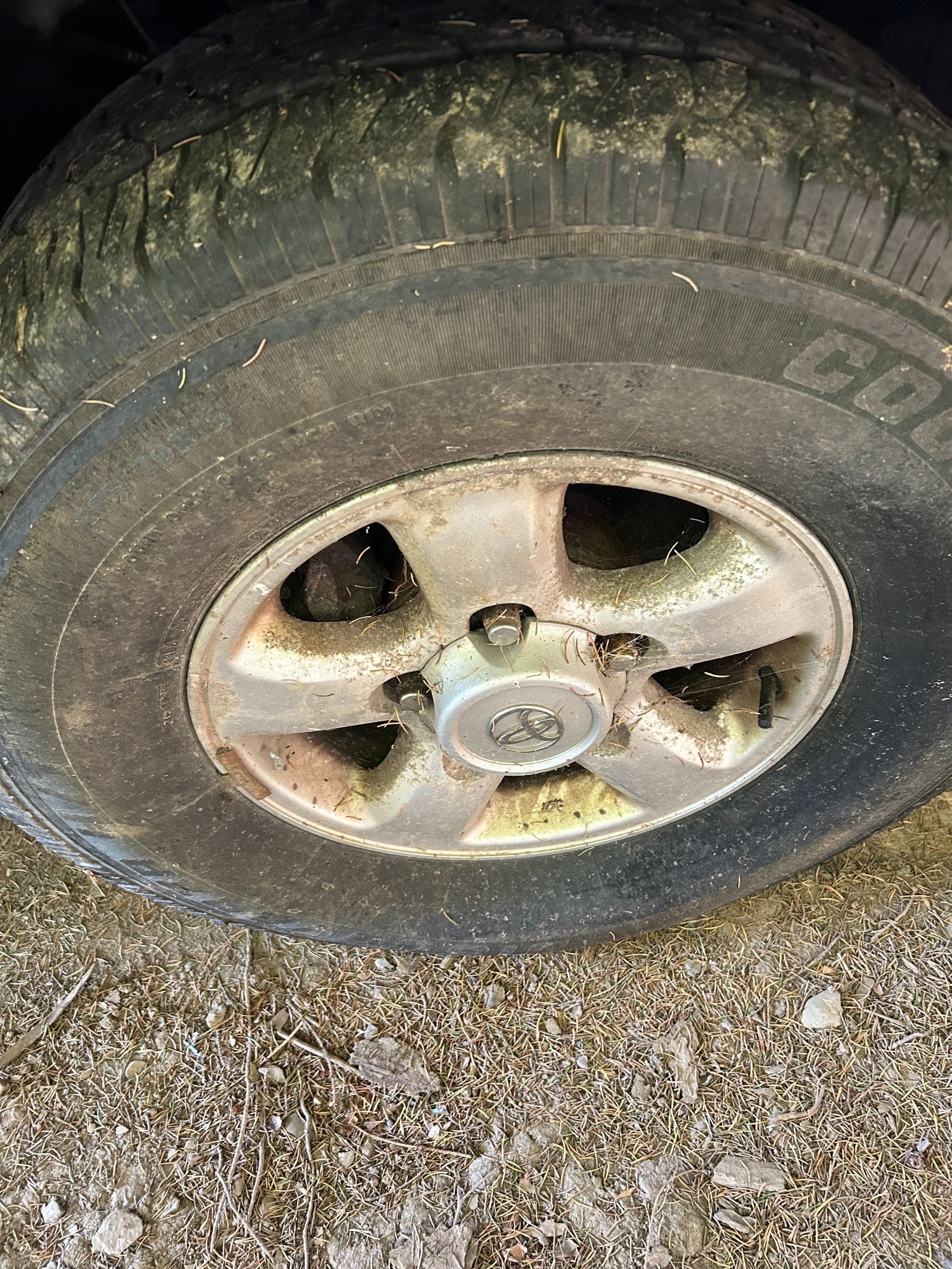 The seller also notes that the rear hatch opening lever is included but has not yet been installed. The tires are in good shape and all hold air, a good sign for a truck that’s been parked since 2023.