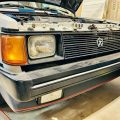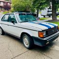 Finished in a pearl white repaint with blue accent stripes, this GLH presents with a subtle flair. The body is described as straight, rust-free, and accident-free, with all doors, hood, and hatch aligning and operating as they should. Trim, bumpers, and lights are original and well preserved. A new windshield has been installed, while the rest of the glass remains original and clear.