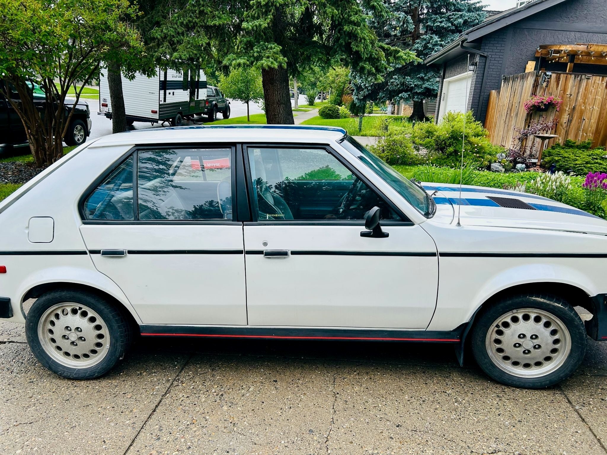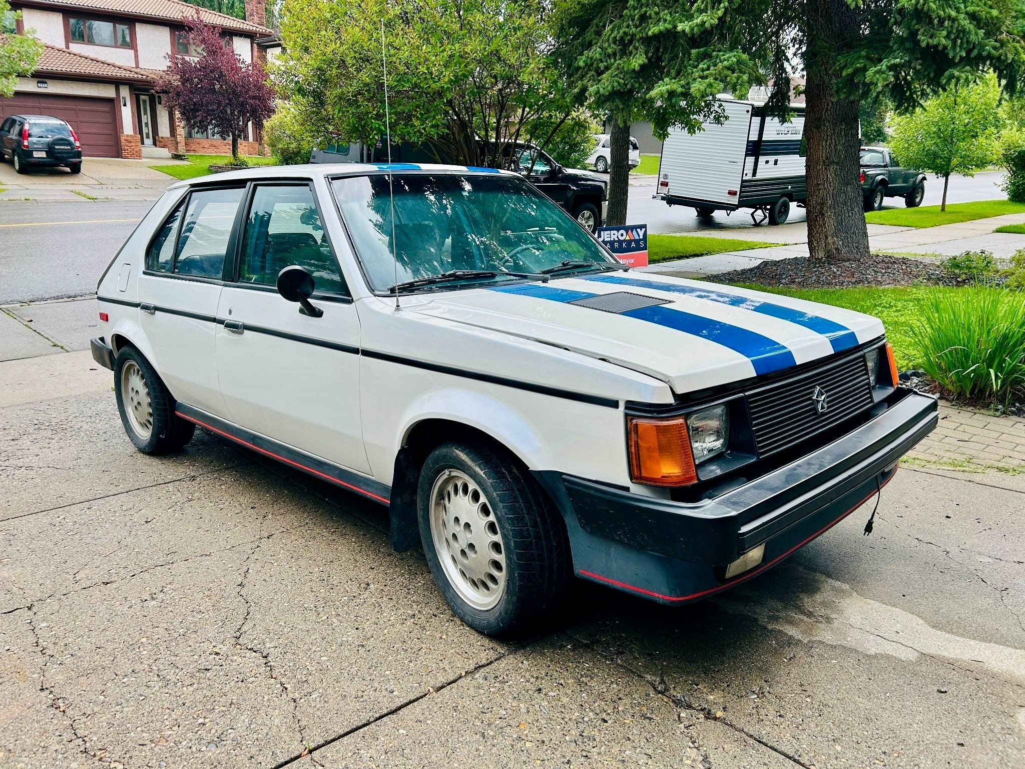 My dad bought a new Omni in 84′ the same time I got my Daytona turbo. Was hoping he’d get the GLH but it didn’t happen lol. He told me a coworker of his had gotten a GLH and taken him for a ride in it. Said it took corners like on rails. These really were little pocket rockets. Don’t care for the repaint at all. Should have left it the original Santa Fe blue. That’s a great color.