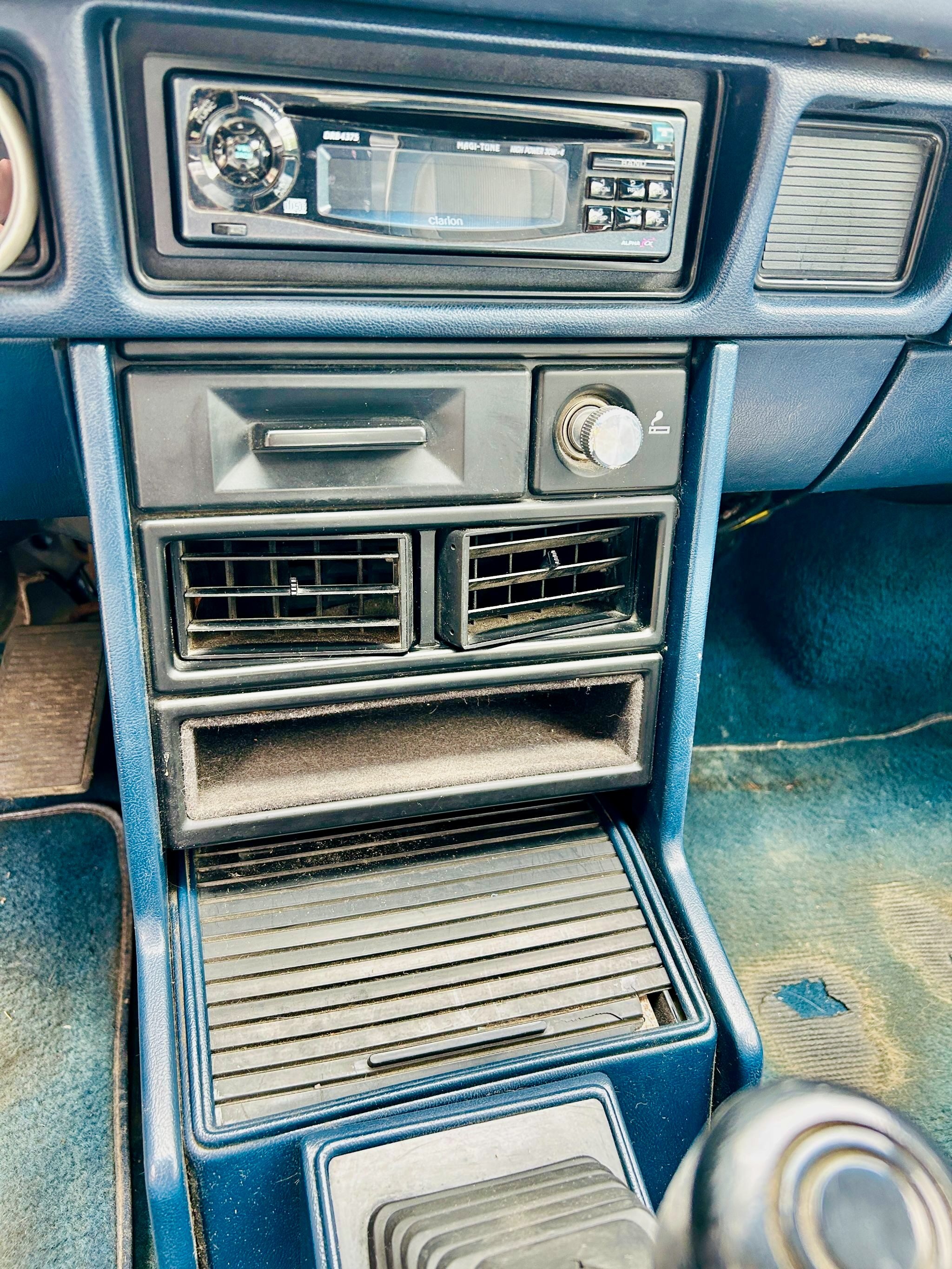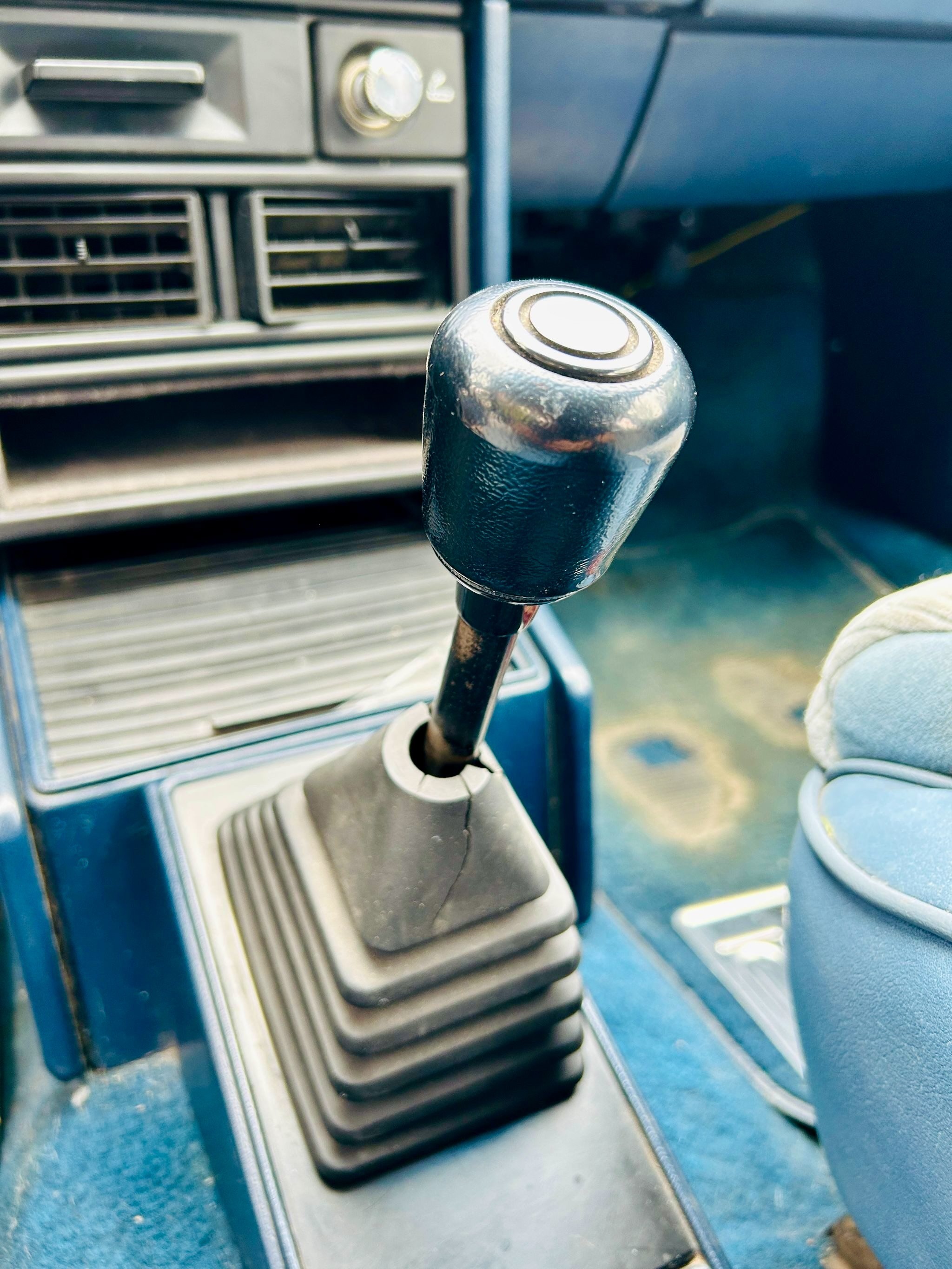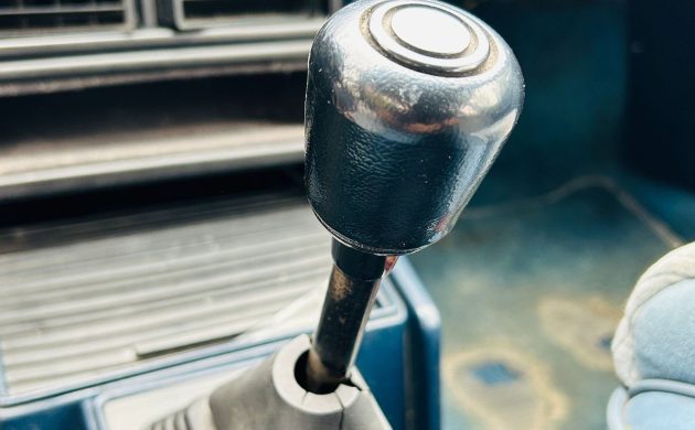 Inside, the original blue interior is in exceptional shape, showing only minor wear consistent with careful use over four decades. Both the front bucket seats and rear bench retain their factory upholstery, the dash is uncracked, and the headliner is clean and tight. A four-point roll cage has been discreetly integrated, adding a performance touch without compromising comfort. Other features include power steering and brakes, an aftermarket stereo, and a factory instrument cluster with an added boost gauge.