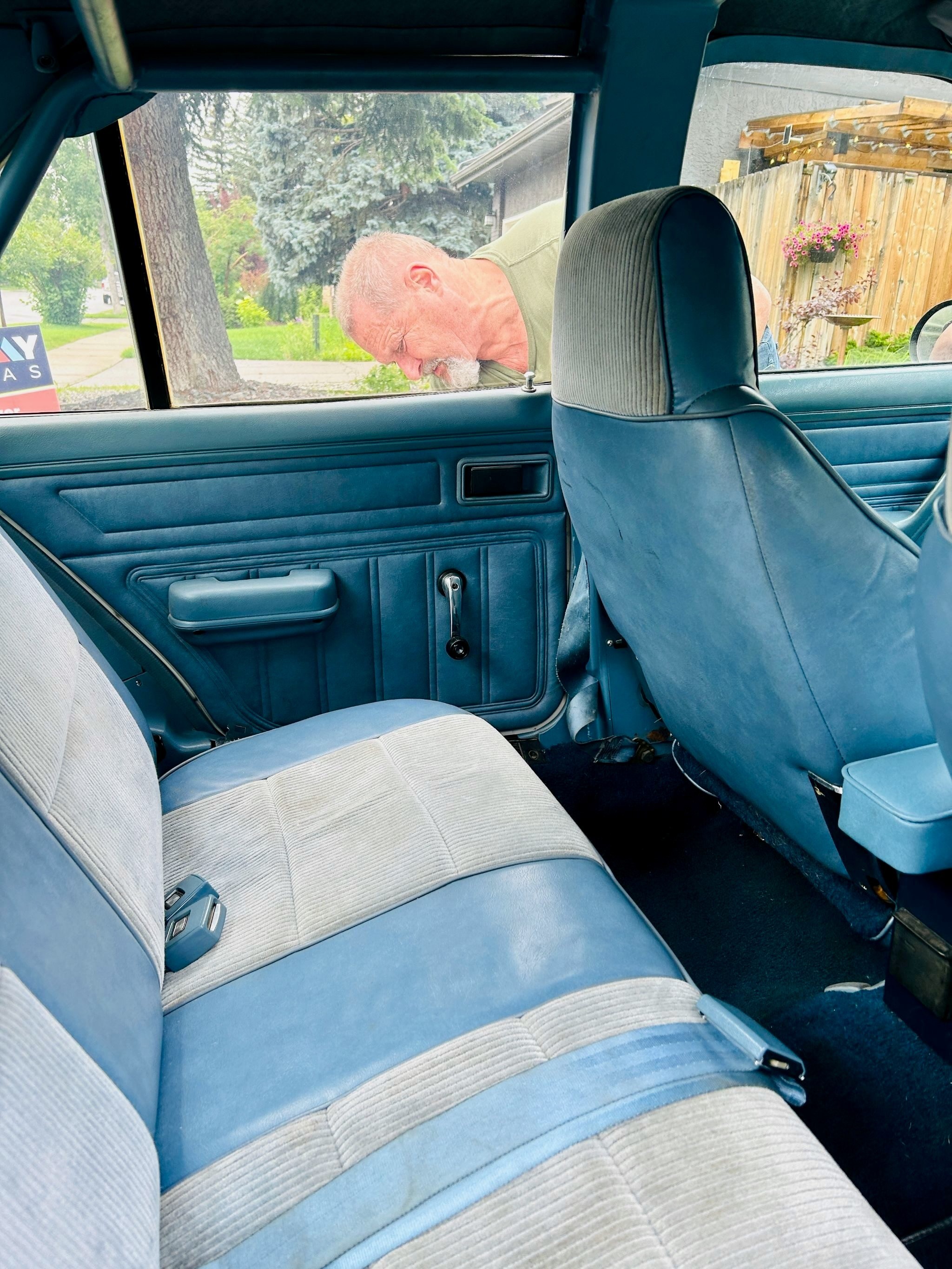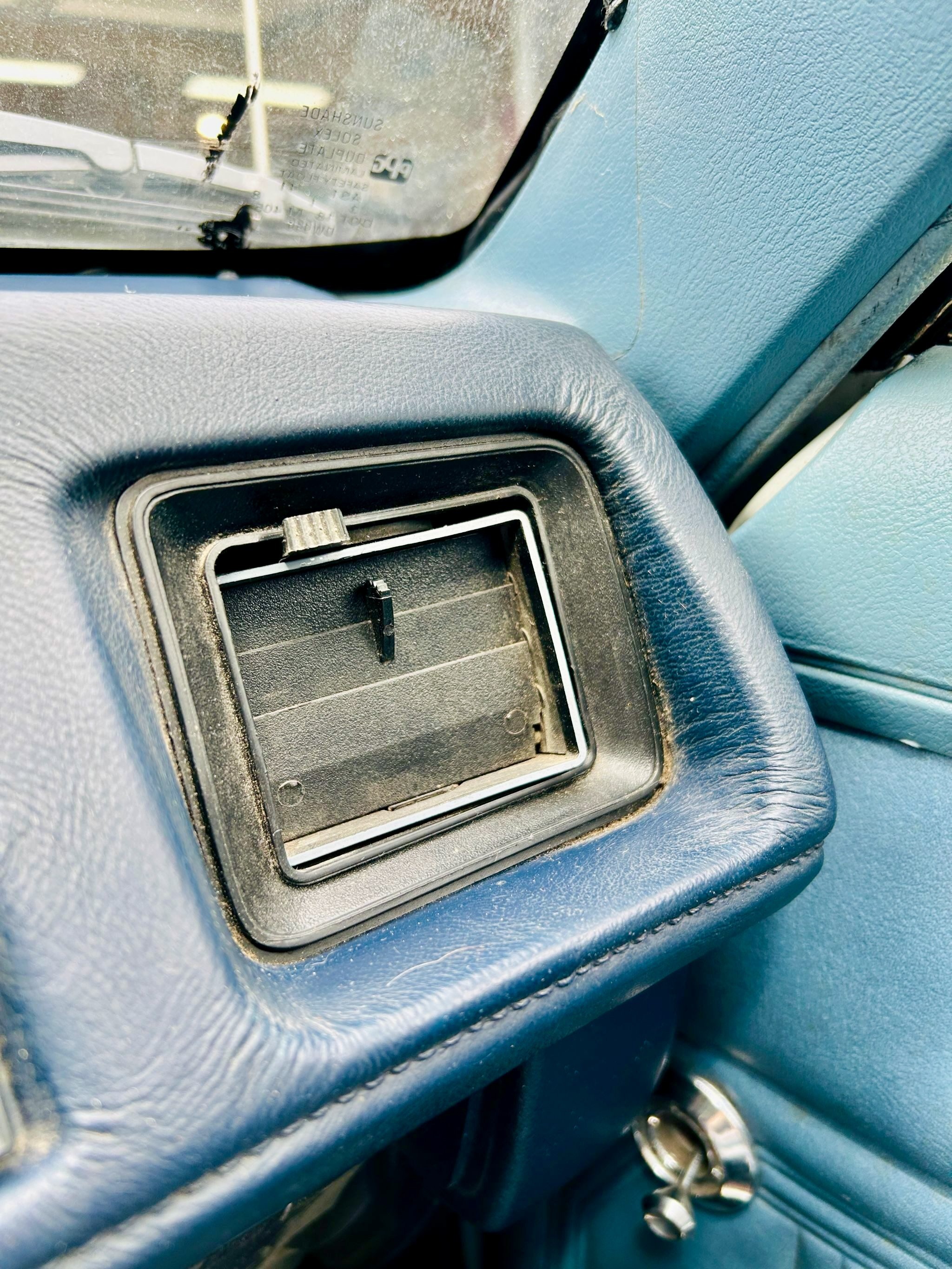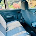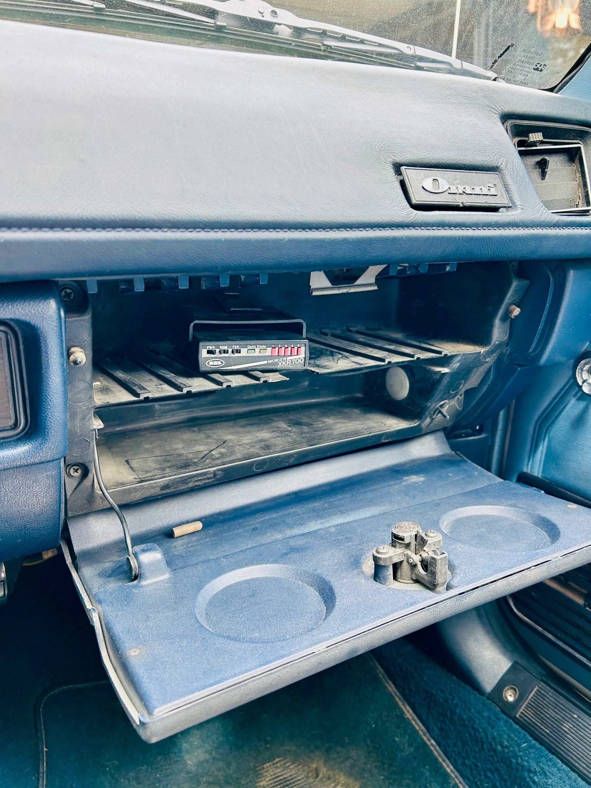 Inside, the original blue interior is in exceptional shape, showing only minor wear consistent with careful use over four decades. Both the front bucket seats and rear bench retain their factory upholstery, the dash is uncracked, and the headliner is clean and tight. A four-point roll cage has been discreetly integrated, adding a performance touch without compromising comfort. Other features include power steering and brakes, an aftermarket stereo, and a factory instrument cluster with an added boost gauge.