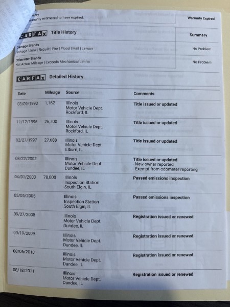 The seller has added the CarFax as well as receipts for the water pump. They are still looking for receipts for the top hydraulics, as those were done recently as well.