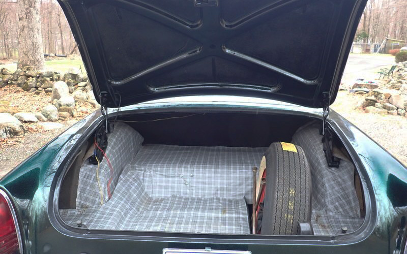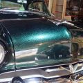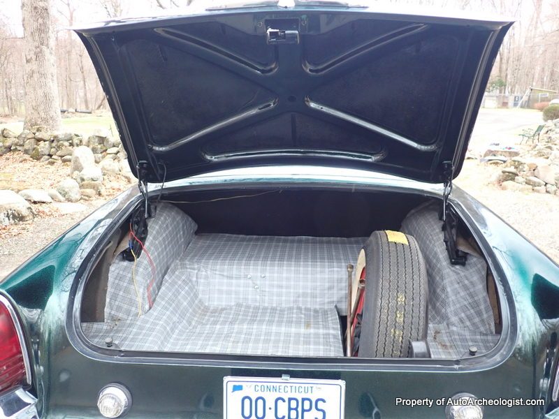 Gor-geous, man, what a beautiful car. The deep green paint is called Palace Green, and it was repainted at some point during a restoration an unknown number of years ago. The restorer took a slight liberty with the paint; they added a bit more metal flake than would have been factory-correct, and it really makes it pop in sunlight. Unfortunately, the seller scheduled the photos, and it ended up being overcast that day. They do provide a couple of detailed photos in the gallery that show the paint, and you can really see it sparkle.