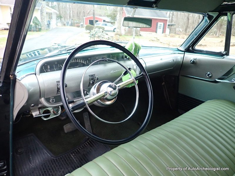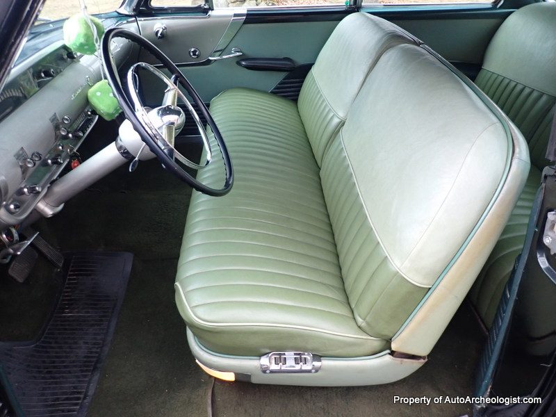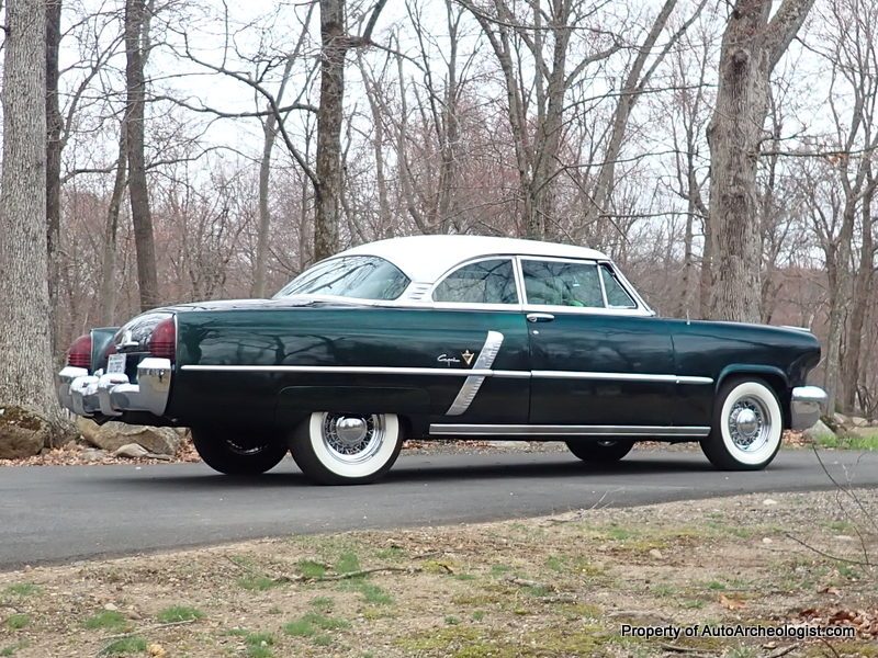 Of all the post war body styles (51-54), this looks like one of the most well styled around, decidedly ahead of its time. Great color including the flake. Wide whites and wires are period. Even color matching dice! Beautiful car, very reasonable price, should sell quickly.