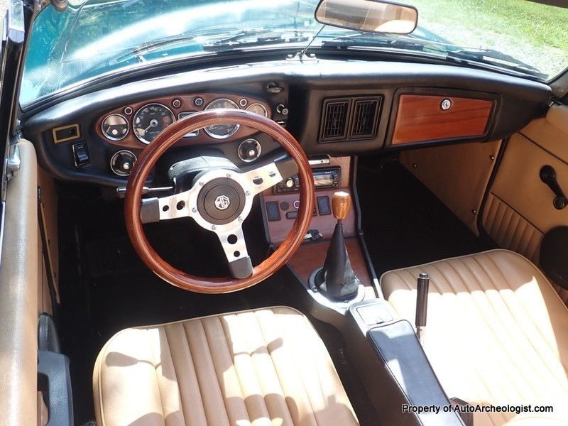 If you know anything about MGs, you know that the ’74 was the last of the chrome-bumper MGBs. Nothing against a good rubber-bumper car, but the classic look was diluted a bit when the change was made. For a couple years, MG used a recessed grille, but they reverted to something resembling the original in ’73 and ’74, and you have to admit, the casual fan will have a tough time seeing the difference between an early MGB and this one. The current owner bought the MGB about a decade ago, and it had already been refurbished by a previous owner who had brought it up north from a southern state. The paint is older but still in good shape (it’s Dark Jade Metallic).