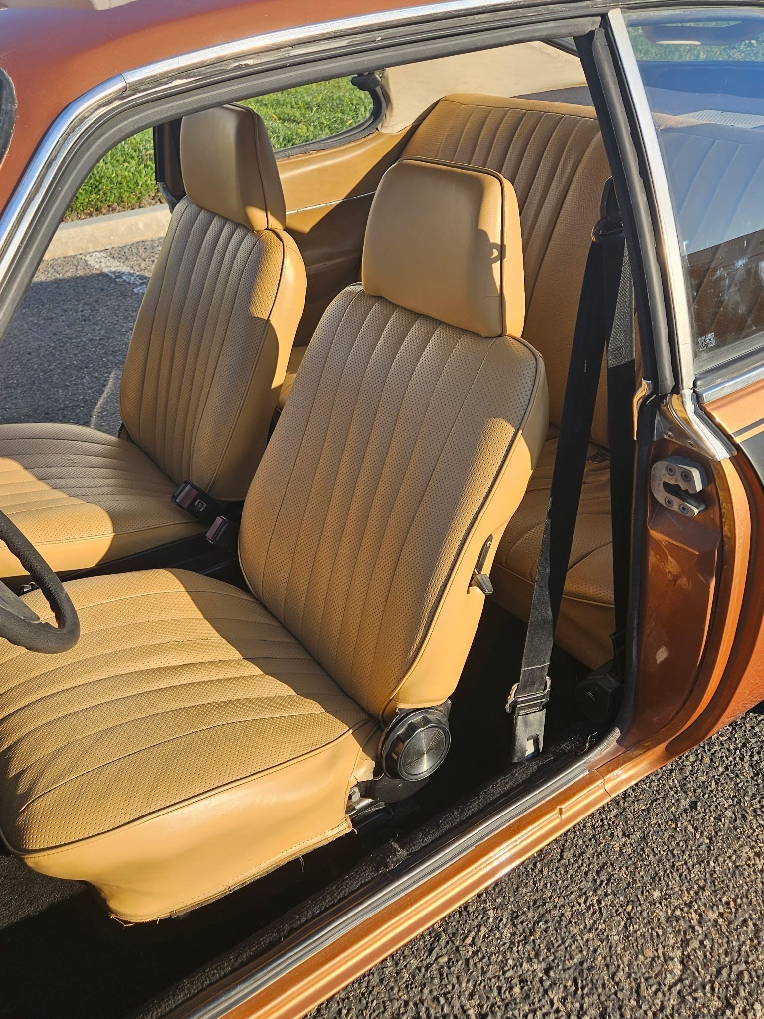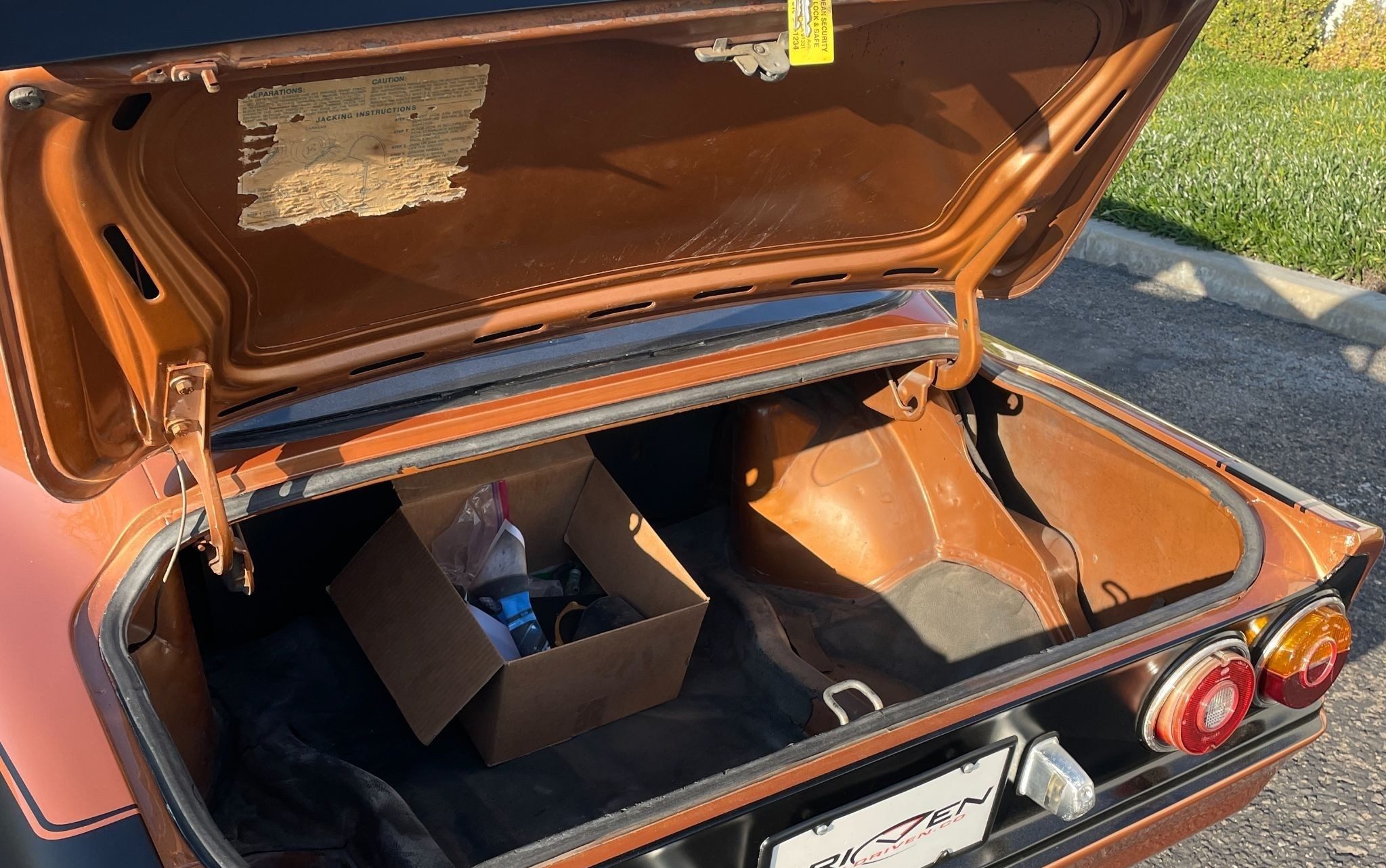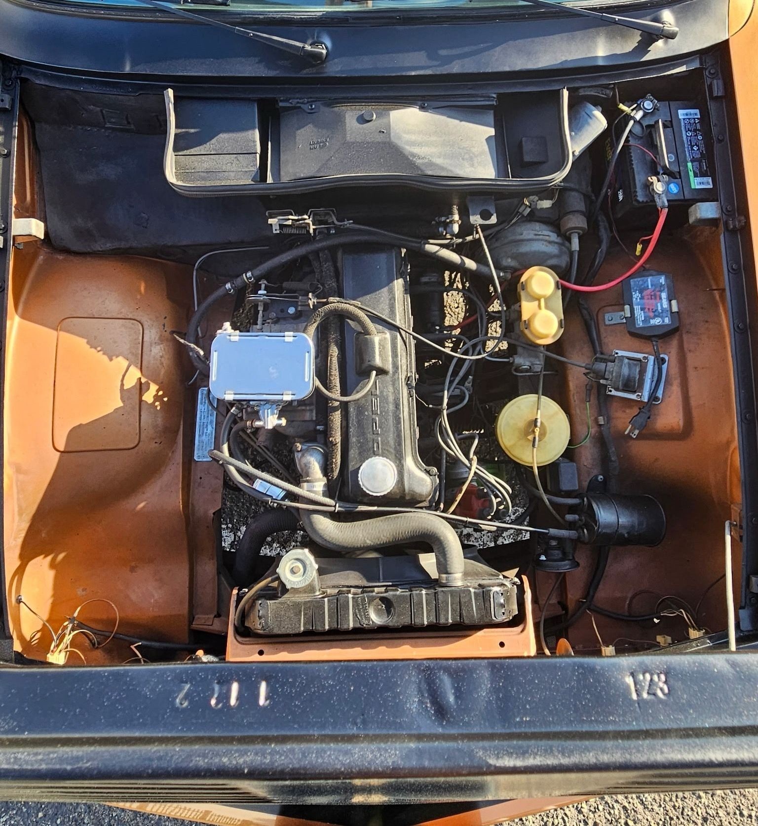 certainly a very pretty car. even better sans bumpers and with the front spoiler and air ducts. some rallye’s came with high impact colors, but this original copper was both flashy and classy. super popular cars in Europe because they are so light and handle so well. this would be a great pick for driving on curvy mountain roads………… most have rotted away from the lightweight metal, so this is truly a find. “Honey…..can i have another toy”?