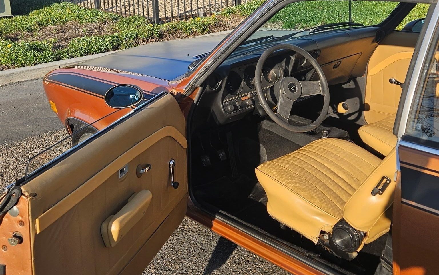 The “Rallye” model received some suspension upgrades in addition to a blacked out hood and special stripes. With its wide 15-inch “Revolution” wheels, fresh two-stage “Opel Rallye Gold” paint, and bumperless physique, it certainly looks as if it’s ready to attack a special stage or two. From this rear three-quarter angle especially, this is a beautiful little coupe (apparently designed by a team led by eventual GM design vice-president Chuck Jordan). There aren’t many Mantas out there to buy, so if you’re in the market for a car that Car and Driver highly recommended when it was new as the best of the super coupes, this one’s a beauty.