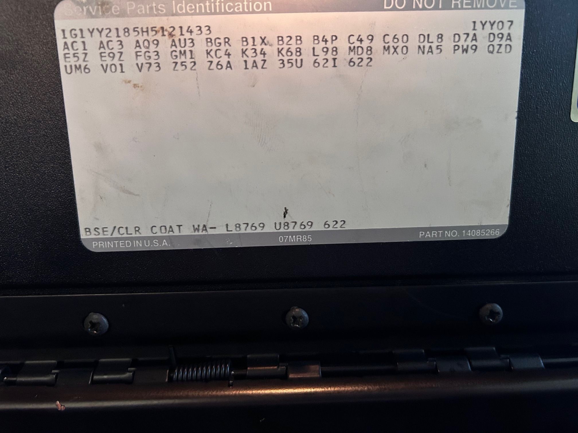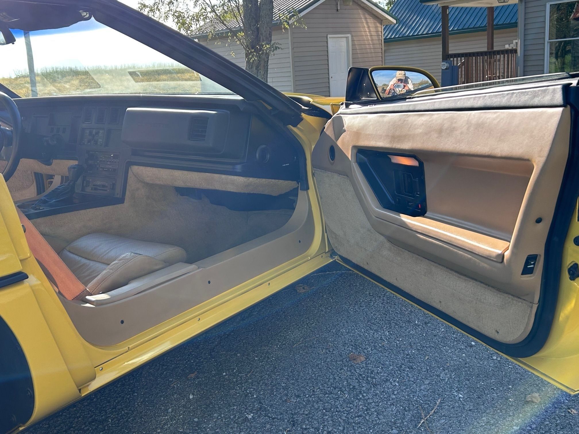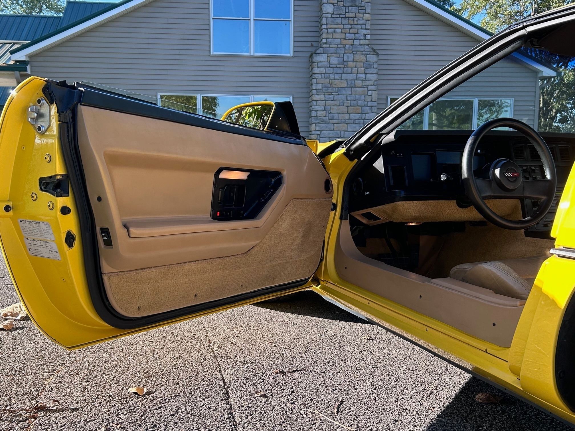 Behind the 350 was GM’s 700-R4 four-speed automatic, whose 3:06:1 first gear ratio helped the Corvette leave a couple wide black patches on the pavement if the owner was feeling like letting off a little steam. With a standard 2.59:1 rear axle ratio and a .070:1 overdrive fourth gear, it would also loaf on the highway and have plenty of revs available for a 150+ mph top speed. This Corvette’s cockpit in no way looks like it has 38 years between it and Bowling Green. The saddle interior looks great with the Yellow (that’s it’s name!) paint, and the digital dashboard will always be cool (at least if you were 10 in 1987 as I was). Yes, that’s still my favorite part of 1980s Corvettes.