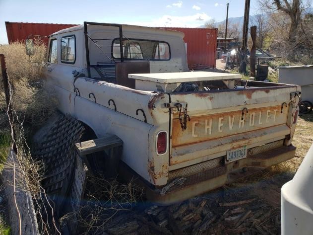 This big ol’ honkin’ beast is a 1ton (C30),as indicated by the front hub. I have a ’65 C20 ,had a ’66 C10,and have been in love with these trucks for my lifetime. This is indeed a rare monster,and worthy of the care and feeding of someone new.And yes,if I,too were closer,I’d be scoping it out.