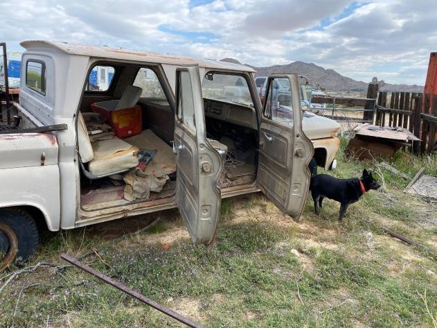 This truck actually looks like it uses two front doors on each side, and apart from the awkwardly-shaped panel between the door windows comes across well. As far as the general condition of the truck, it’s obvious that you are paying quite a premium over what a similar-condition standard truck would cost, but if what you want is a crew cab truck from the 1960s, apart from these rare conversions and the occasional  International Travelette, you won’t have a lot of choices!