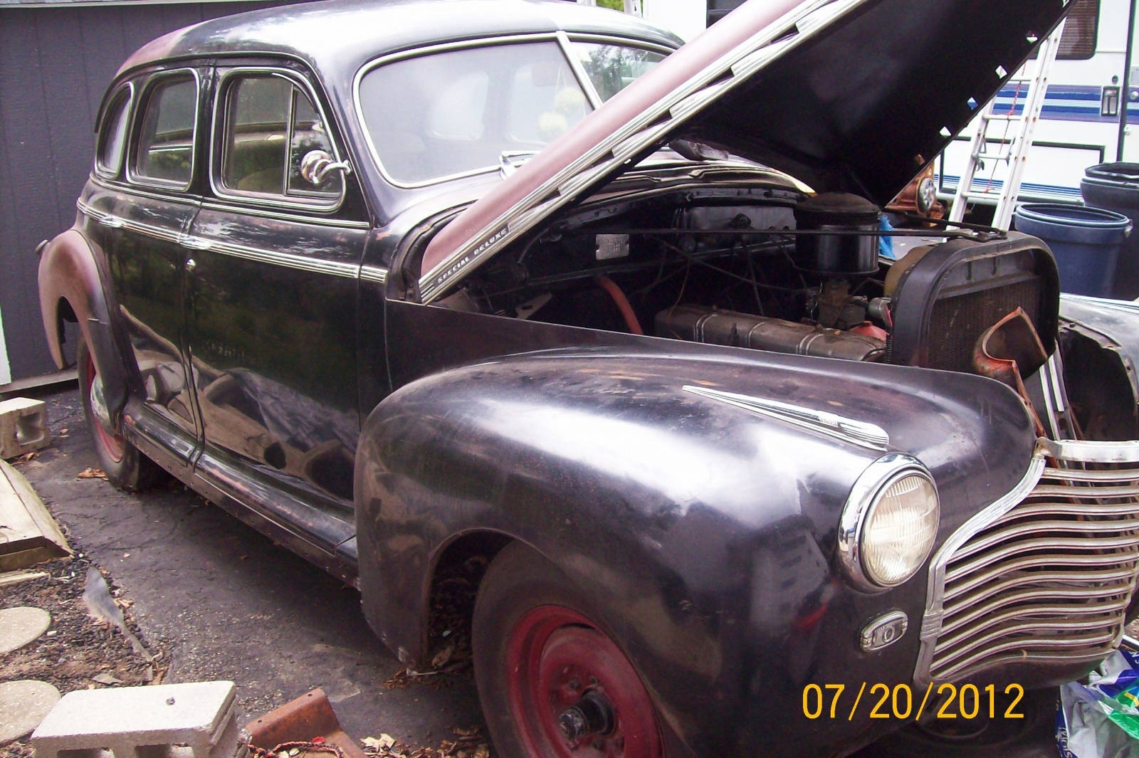 Seller Description: Posting this for a good friend in St. Louis, Missouri. He has for sale, his 1941 Chevrolet Special Deluxe 4-door sedan. Asking $6,500 or best offer, but no trades. This car has been sitting in his garage since 1999. He had, at one time thought of making it into a mild street rod for his wife to drive, but as with many of us, life and work got in the way. The car has only been out of the garage three times at any given point in time and this was to just clean up/out the garage and take photos.