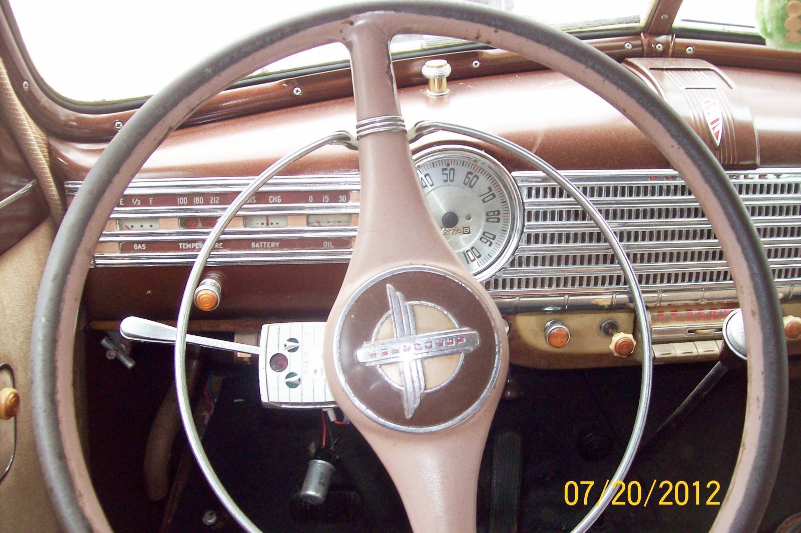 something funny about that car…… i had a 41 black 4 door made in oshawa ont and it had a vaccumshift mounted on the column, a beast in cold weather! the photo showa a floor mounted shifter i believe , was the spare the origional column shifter???????