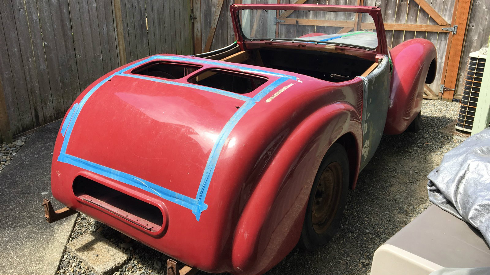 They were built from aluminum because it was the remaining stock from aircraft production in WW2, the dicky seat screen for example was aircraft grade wood with aircraft grade rivits to hold it together. The long hood and fenders are a challenge to get right / straight. The hood frame is also a challenge. Mike