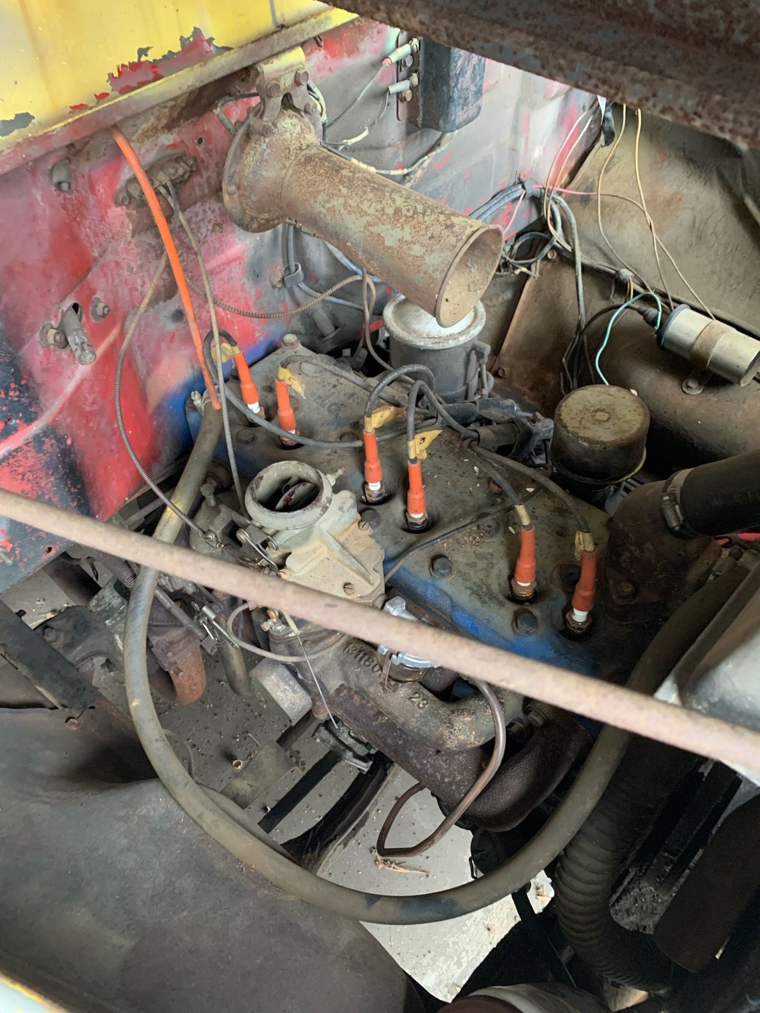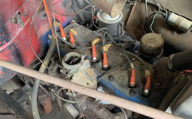 Oh, wait, that’s a tired flathead six… But, maybe it’s got huge valves, hi-compression, a wild cam and the carb is really a disguised FI unit.