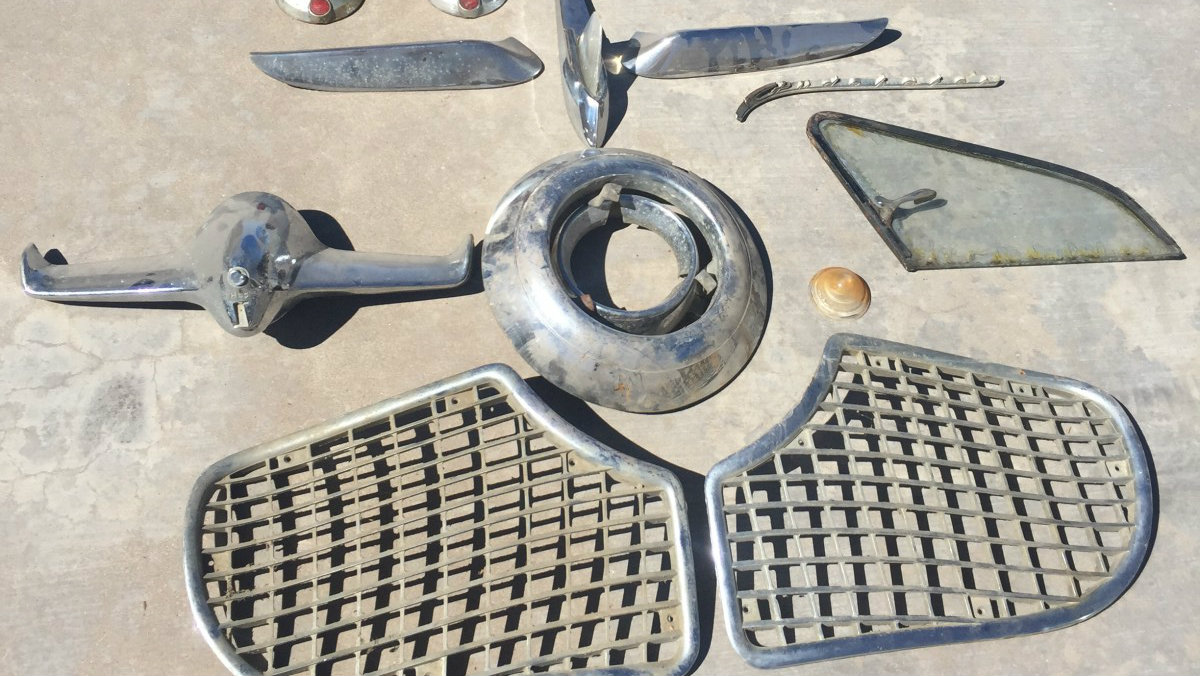 Sure, the trim is pitted somewhat, although this will clean up somewhat with some polish and elbow grease. Plus there’s a spare set of tail lights and chrome included that look much better!
