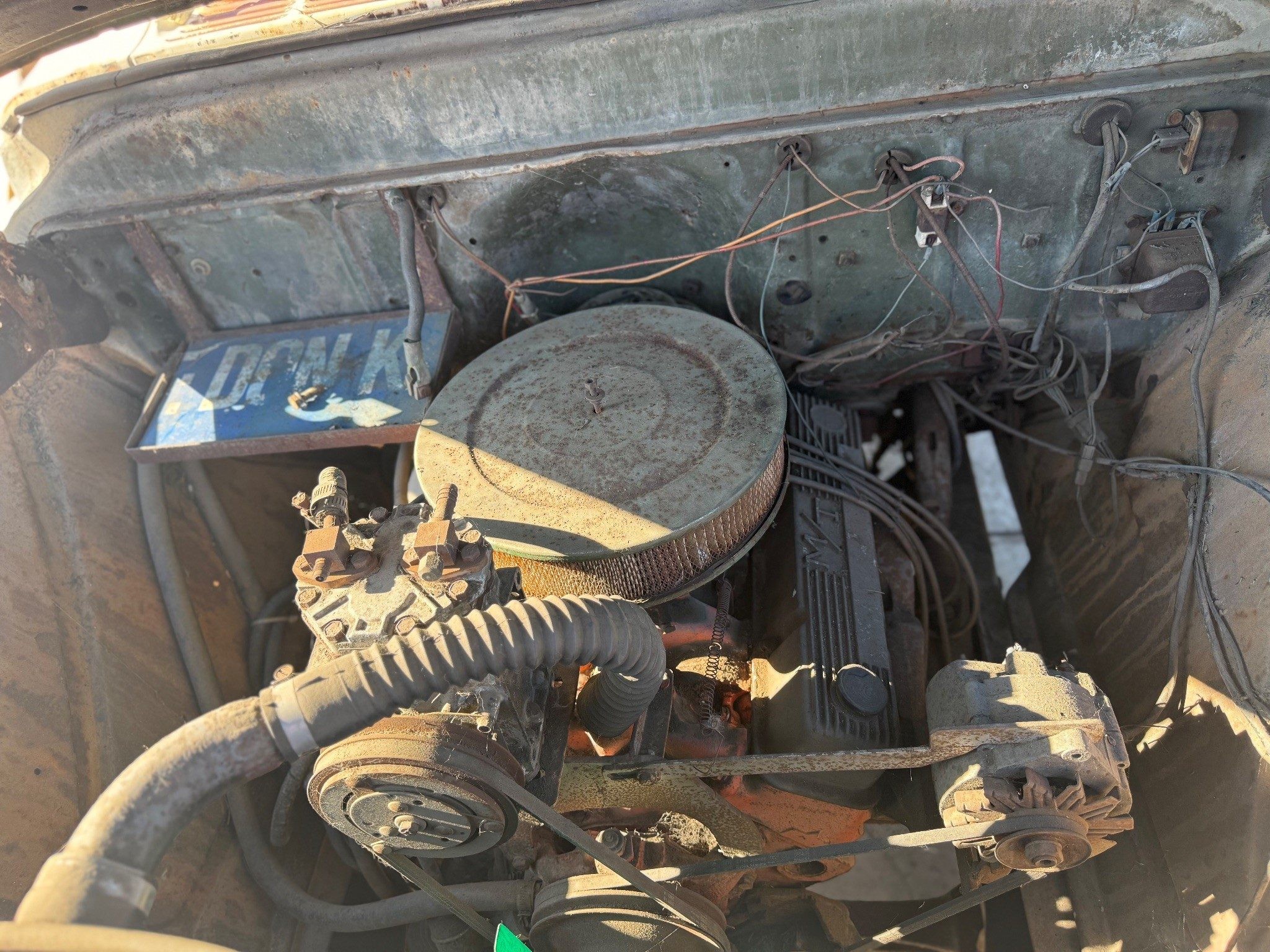 Looks like this engine was dropped in but doesn’t appear that it’s ever run in that bay. It would be a nice project to tackle but I think that A-C compressor would be punted. Besides, I don’t think I ever saw a York or Tecumseh compressor used on a GM product….