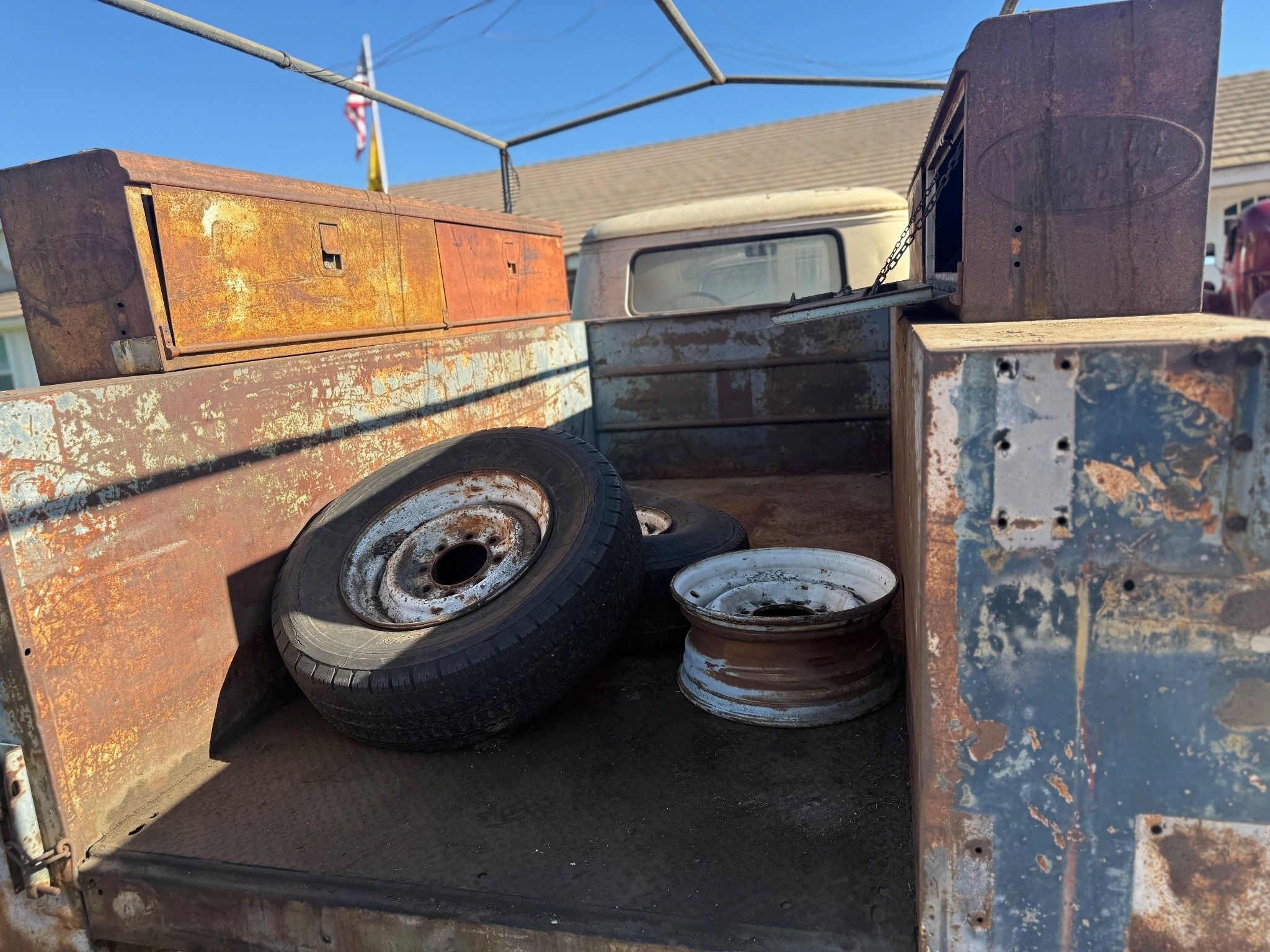 This is a great 3/4 ton truck, very refurbishable for weekend warrior use, and trips to C&C,local shows. I am surprised it has only a 3 speed?? Unless as GEO says both the engine and tranny have been replaced with something out of a car or 1/2 ton truck??? My being of the originality mindset I would basically keep it as it is. Personally I would remove the top boxes for driver visibility reasons.That would still leave you enough box space to haul anything home from the hardware store, yet leave the uniqueness and versatility of the service body. And as Geo said be able to tow a trailer with other vehicles/equipment on it..