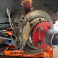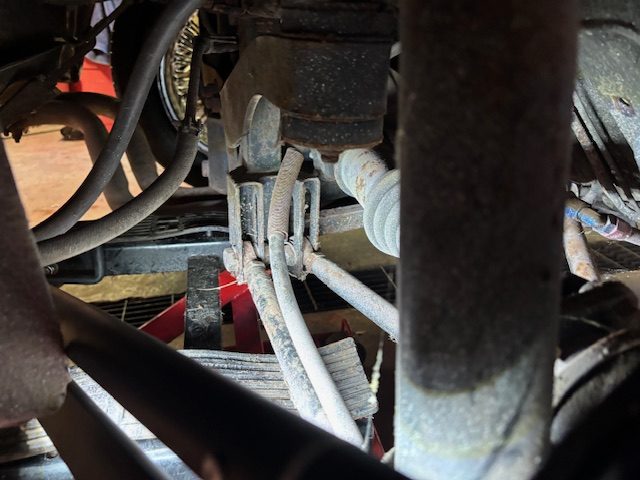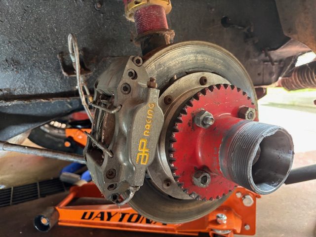 The chassis has been upgraded with coil-over suspension components and additional suspension improvements to better handle the increased power. Stopping duties are handled by AP Racing front brakes paired with a dual master cylinder setup, a notable upgrade that reflects thoughtful attention to drivability and safety. The battery has been relocated to the cargo area, a common modification that helps with weight distribution.