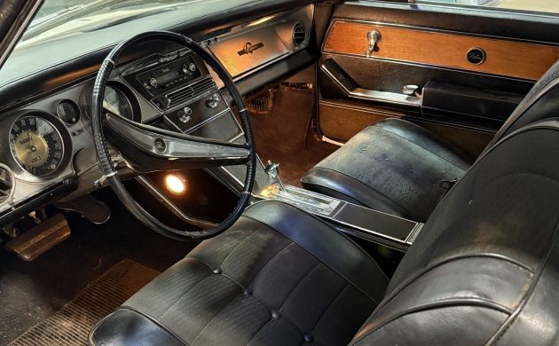 Under the hoods of all Rivieras in 1963 was Buick’s torquey Nailhead V8, in either 401- or 425-cubic-inch flavors (325 and 340 horsepower, respectively). The seller says that the engine in this car is “brand new,” but he didn’t mention which displacement it is. It doesn’t really matter much; in real-world driving, they are very similar (and 401s greatly outnumber 425s). The Buick Green engine paint suggests that the engine is out of something other than a ’63 Riviera (all of their engines were painted silver for that year only), or perhaps the engine builder simply liked the color better. Some of you may question the open-air cleaner. The Riviera’s stock air filter is backordered, probably forever, so owners are forced to get creative. My personal ’63 has an open air cleaner as well, and one benefit is that the Nailhead sounds like a 4,500-pound vacuum cleaner when you stomp on it. It doesn’t help gas mileage.
