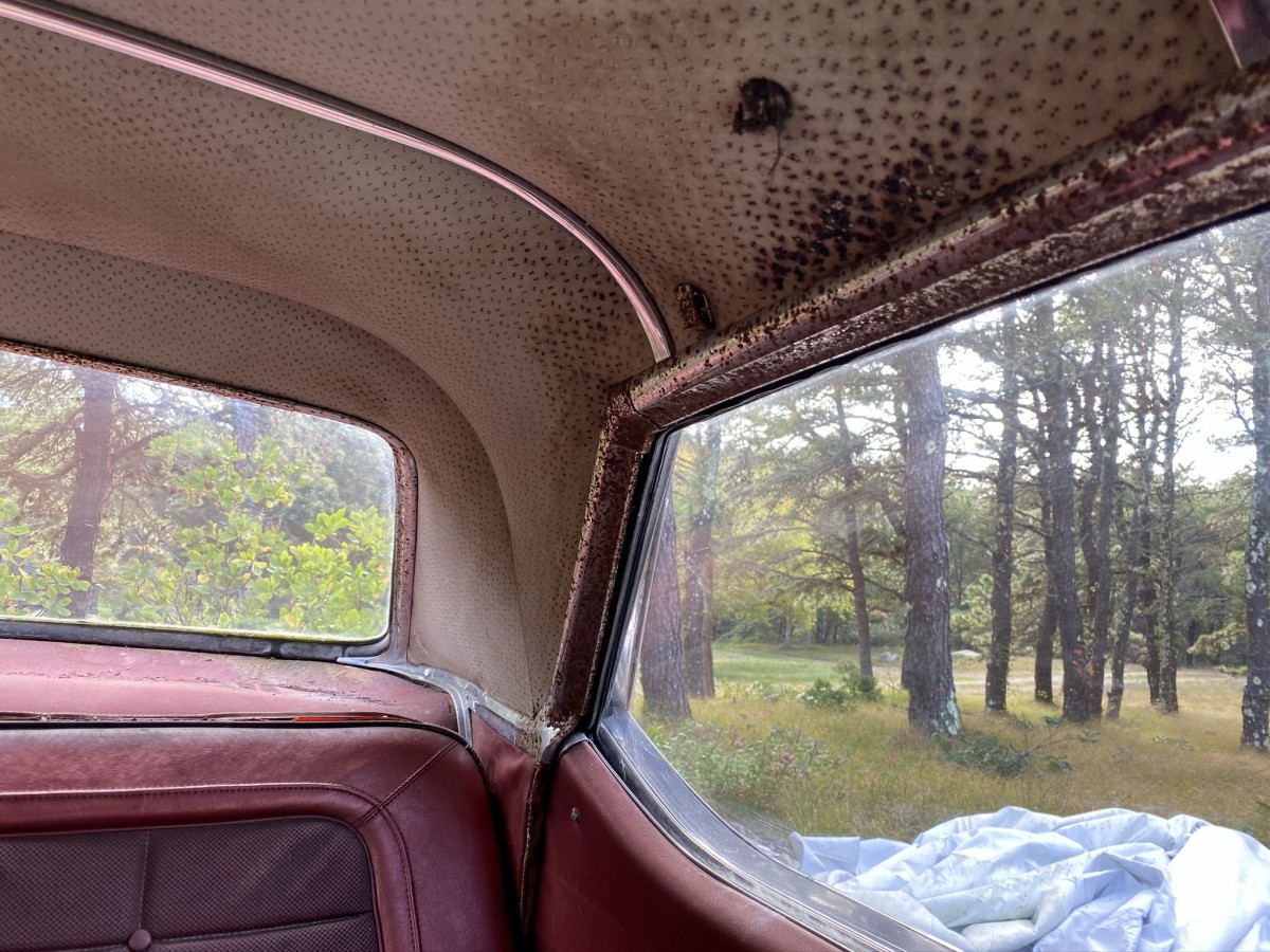 All glass is intact and door panels and switchgear are in good condition; the same goes for both armrests. The rust is contained to the leading edge of the hood and the panel between the bottom of the rear glass and the trunk lid. I was not able to get into the trunk, either, but keys are included; the lock cylinder would likely come free with some spray lubricant, which I did not have with me on my short visit with the car. As a bonus, I am happy to help with the logistics of getting the car off of the island for our Barn Finds readers – just contact me via the form below to set a plan in place.