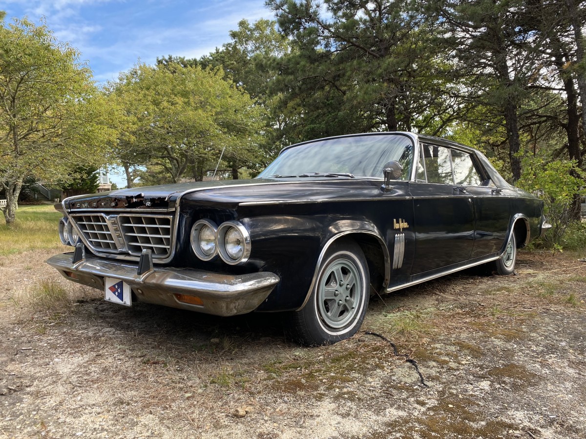 I recently had the opportunity to visit a barn find project car on the island of Chappaquiddick, which is located off the coast of Martha’s Vineyard. It’s a 1963 Chrysler New Yorker that has been in the seller’s family for decades, living in one of the more historically significant locations off the New England coast. The New Yorker does not run but was stored indoors until recently. It has needs of the cosmetic and mechanical sort, but it also almost entirely complete and unaltered aside from the wheels.