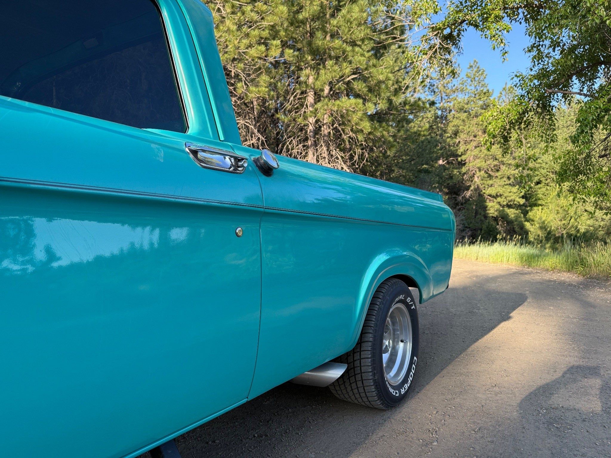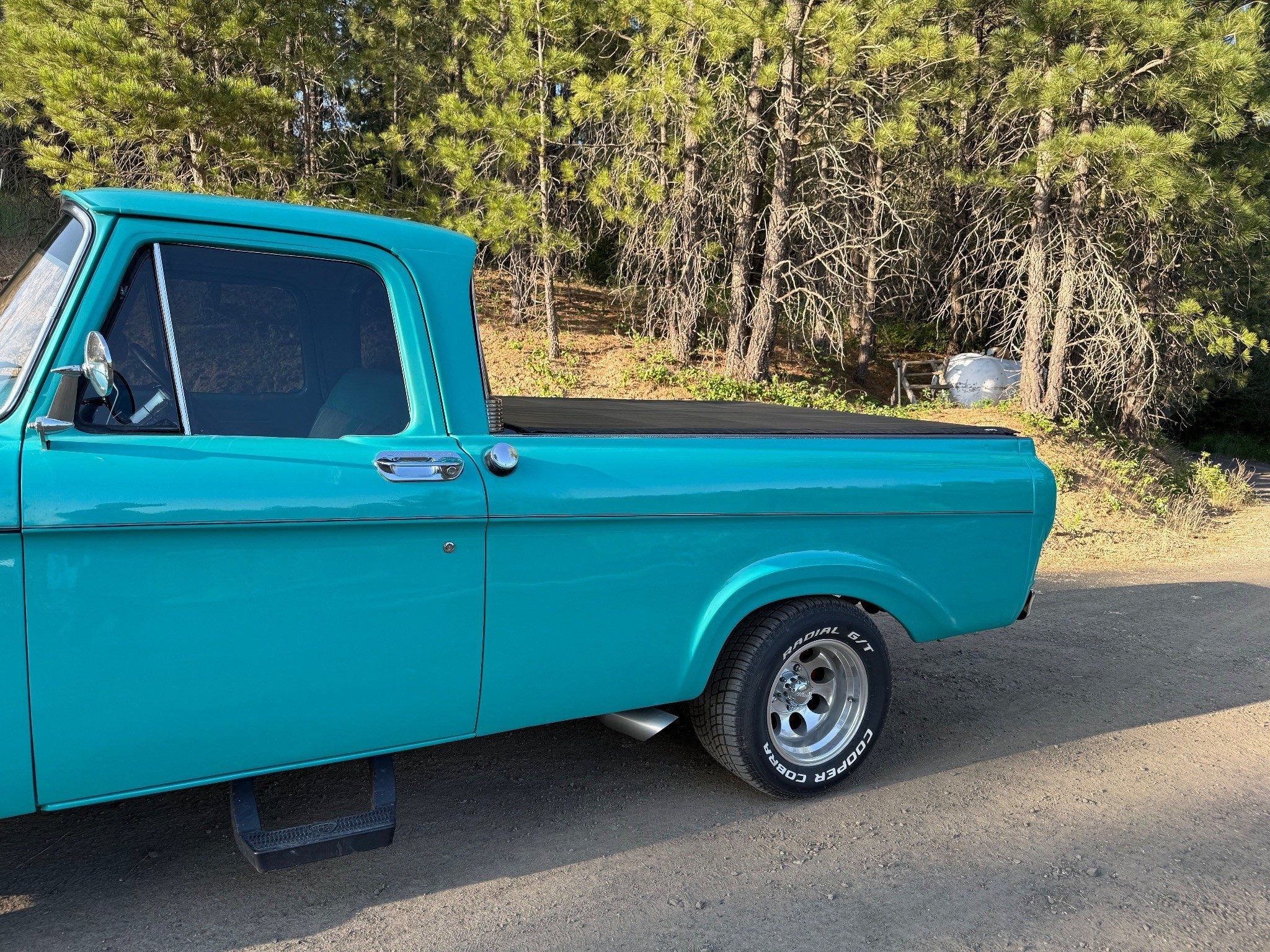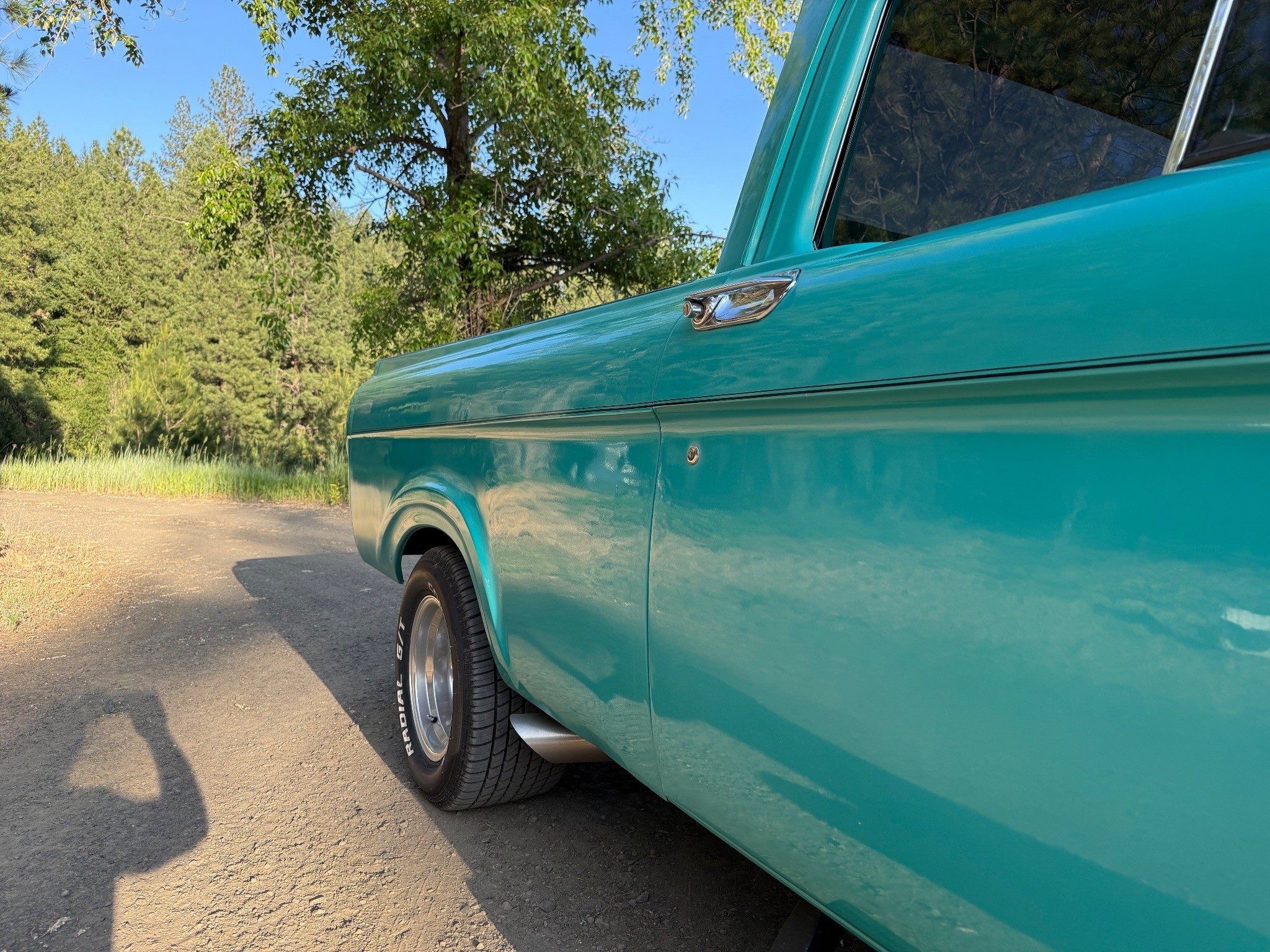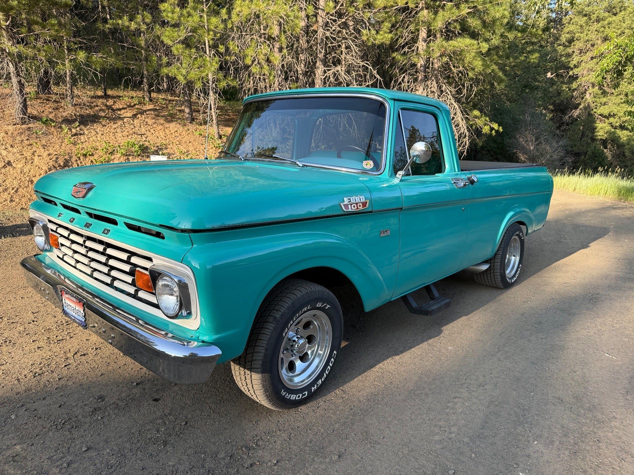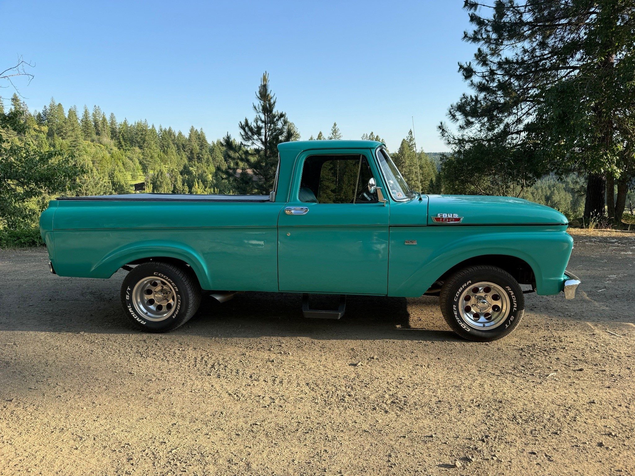 The 1963 F-100 engine lineup was somewhat limited, with a standard 223 six or an optional 292 Y-Block, which this truck most likely had when it rolled off the assembly line. Along the way, someone replaced the old 292 with a more modern 302 with some modifications, including an Edelbrock four-barrel carburetor and a set of headers. Although a Cruise-O-Matic was available in the F-100, a newer C4 has been installed behind the 302, and according to the seller’s friend, the 302 “runs strong” and the C4 “shifts nicely.” The truck also has power steering, power four-wheel drum brakes with a dual-circuit master cylinder, and aftermarket air conditioning with heater and defroster.