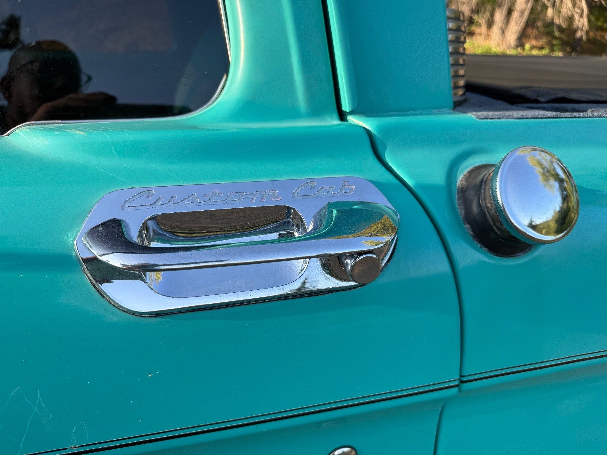 This is a very clean, sharp truck. Mechanical upgrades and tasteful, subtle mods. That shade of green seemed to be common back in the day; good to see one today. The most fun part of Aaron’s good write-up is the list of Custom Cab features…. e.g. a coat hook! Not cheap.