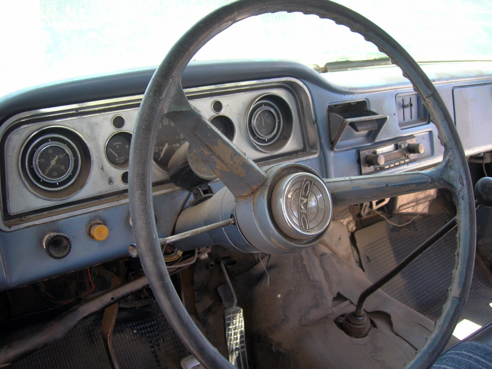 The interior could use a quick browse through the ol’ LMC Truck catalog and you’ll soon load up on a few replacement parts and this thing will be looking crisp and clean again. They say that it has a “good interior, good instrument panel 4 speed standard transmission.” Yes, a 4-speed transmission! This is GMC’s half-ton which would have been known as a 1000 but they didn’t really use a “C” for two-wheel drive pickup like Chevy did, although they did use a “K” for four-wheel drive pickups. Does anyone know why that was? That seems strange to me.
