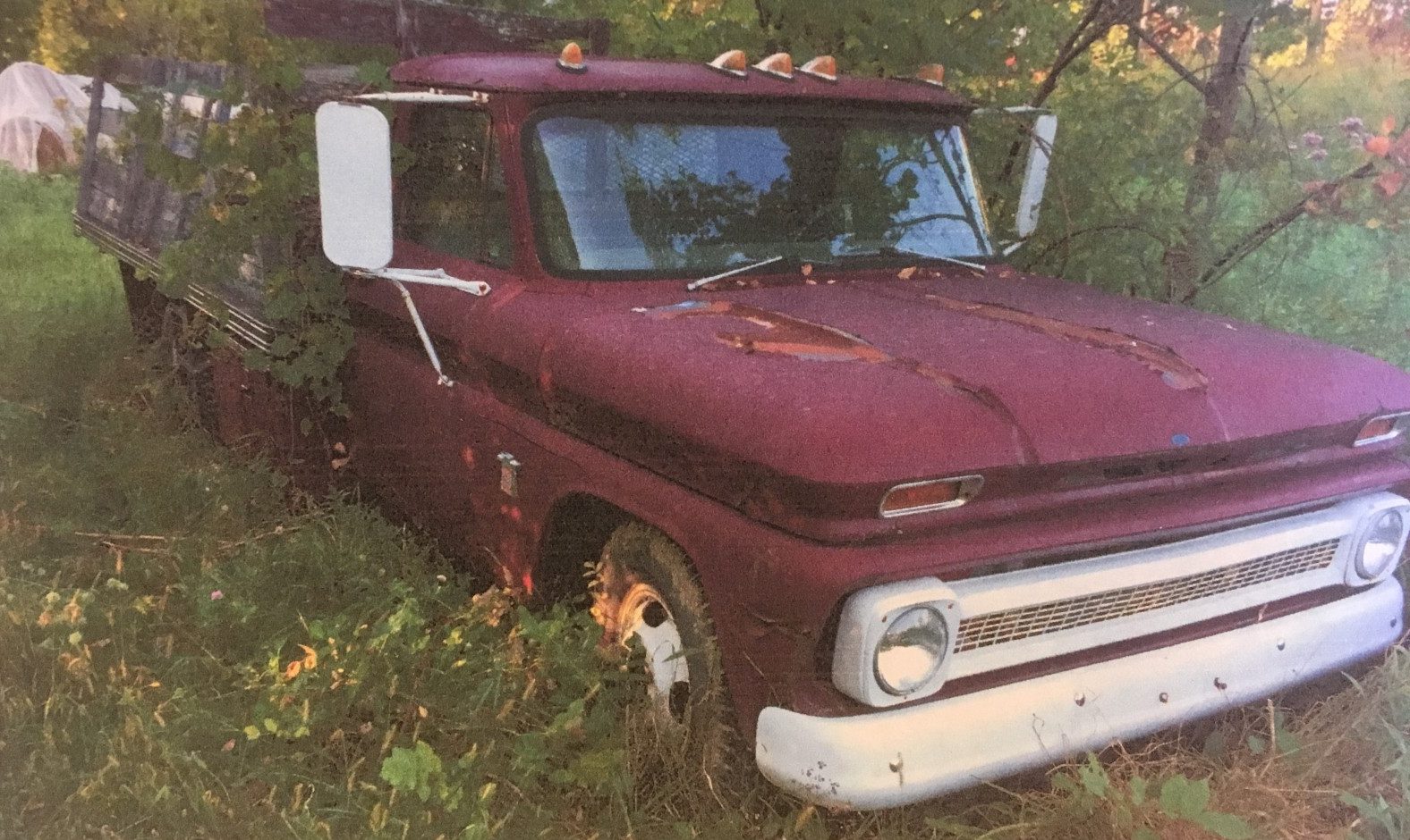 Inside, the truck appears largely original, with no gaudy aftermarket radios sticking out of the dash or mismatched bucket seats swapped in from a later model. The picture isn’t the best, but from what we can see the dash hasn’t been hacked apart and the long-throw manual shifter hasn’t been cut down. The old-school New York State inspection sticker is a clear reminder of how long this Chevy C30 has been off the road, and mileage is said to be a tick over 96,000.