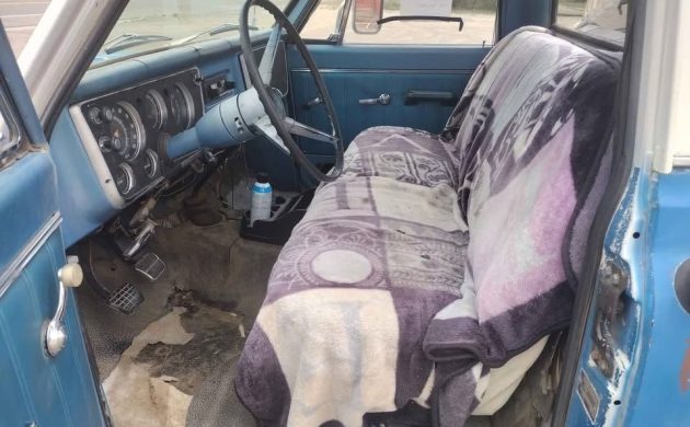 The interior also mirrors the truck’s years of faithful service; it’s worn but not worn out (see a picture of the bench seat without the blanket below). Because there was so little trim in these old pickups, it wouldn’t take much to brighten things up in here, or you could just leave it alone and use the Chevy as it was intended to be used.