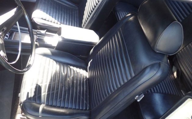The car stayed in the family and was presented to Russell’s daughter when she graduated two years later. Between 1969 and 1982, she put about 70,000 miles on it before an insurance claim was filed for minor body repairs, including work on the left rear quarter panel, some rust repair to the passenger floor, and a repaint in the original yellow. Impressively, that finish still shows well today after more than 40 years, with only minor blemishes such as a small crack and some localized bubbling in the lower body. The stainless and chrome trim remains in very good shape and would polish up beautifully.