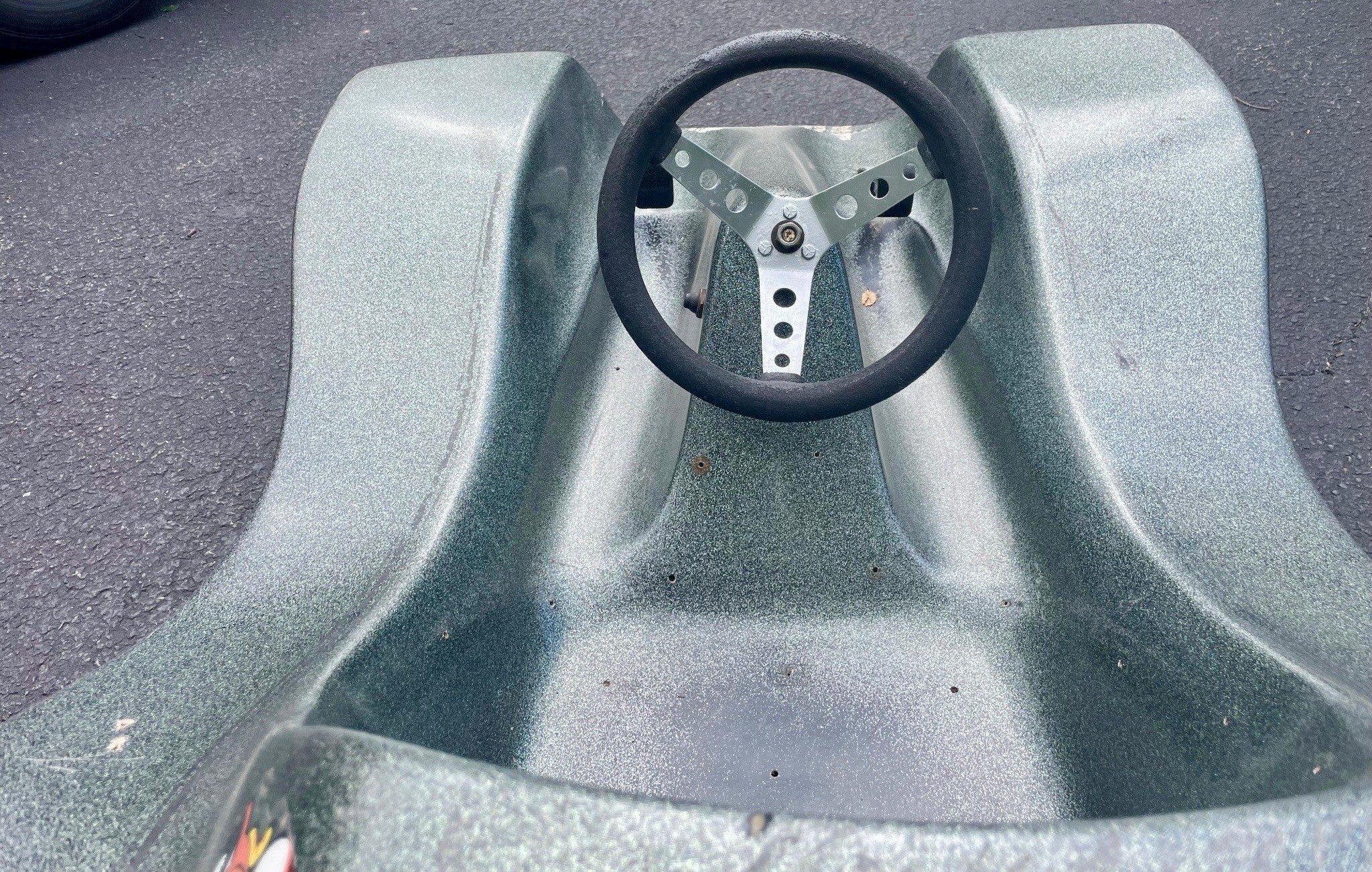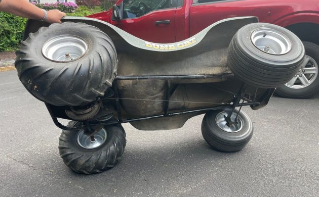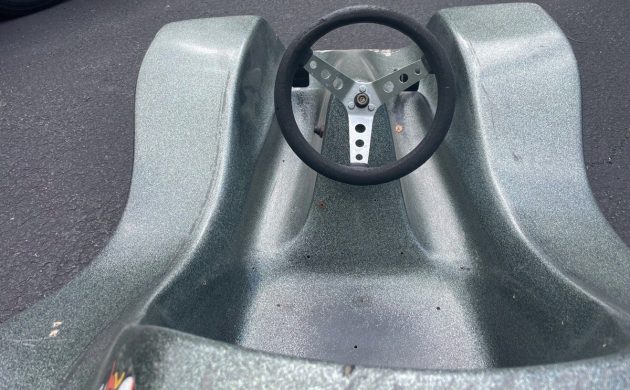 This Dune Cat doesn’t appear to have a padded seat, unless it’s just not shown. There are several nicks, scratches, and maybe a ding or two in the fiberglass shell, but original is original, and I’d leave it as is myself. Not that a 6′-5″ tall person could get their legs around the steering wheel to operate the pedals anyway. Although I’d find a way if I owned this.