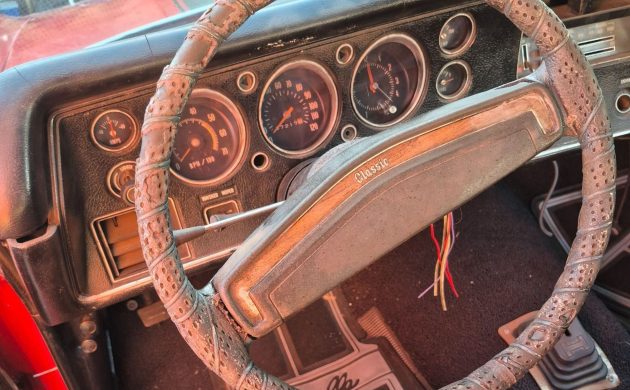 Incorrect steering wheel doesn’t bother me, but that shifter boot and location of the shifter hole is not correct for either a bench OR bucket seats. As someone else stated, that bundle of cut wires hanging from the dash tells me it’s gonna need all new wiring harnesses.