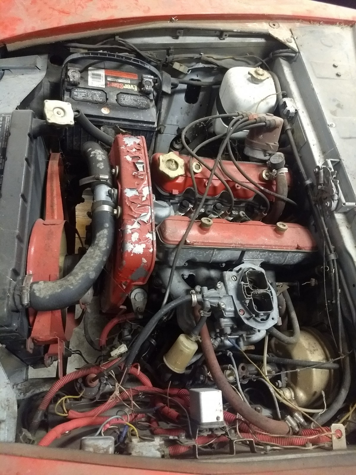 It was his wife’s favorite car before she passed a few years back. According to him, the car last ran six years ago and was parked with a failing master cylinder. He never got back to it after he lost his wife. The car appears to be solid and may have been previously restored or in progress. The red paint appears to be in decent shape and the rockers are solid. Floor pans are solid and rust free, as are the frame rails.