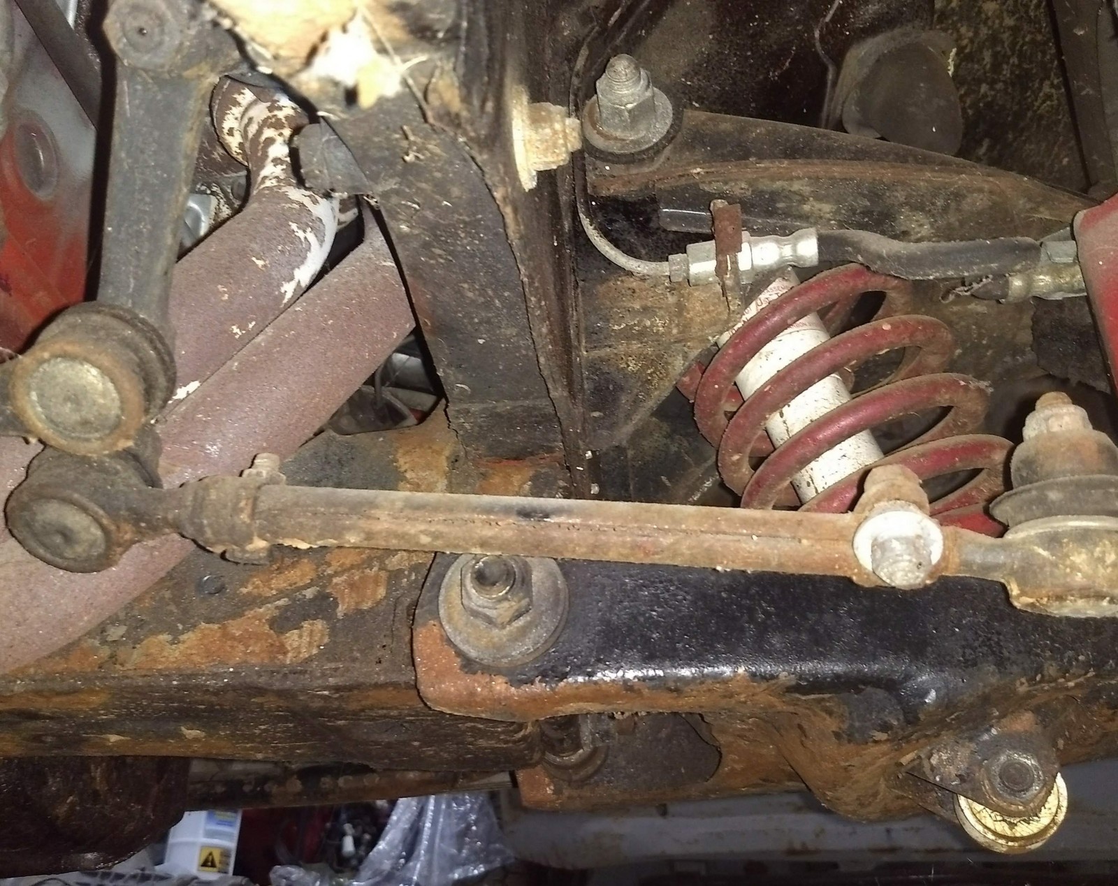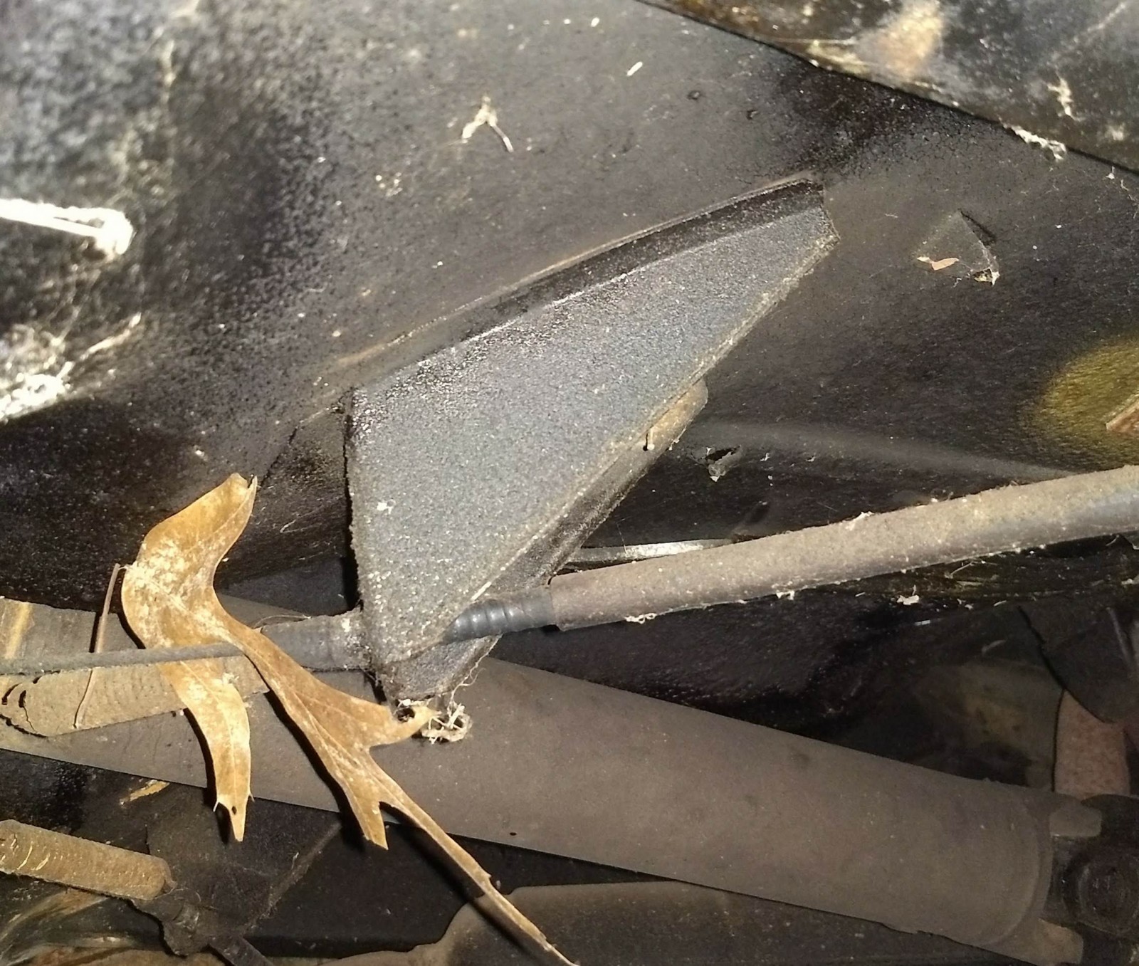 The dirt you see on the frame rail is the remains of the left over nest of the mud-daubers. Nasty little buggers don’t like to be disturbed. They have been eradicated though.