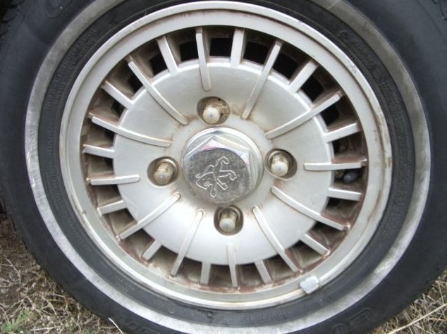“Factor alloy wheels” maybe, but not for this particular model. Those are 505 wheels, for a 15 years later model…. Otherwise Peugeot are great Cars.