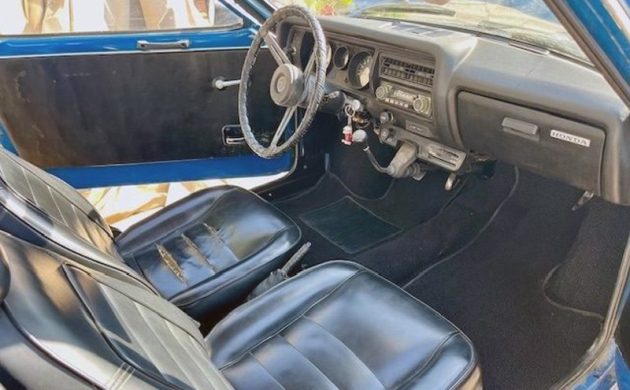 For a Southern California car, the interior looks surprisingly nice. The driver’s seat has some seam separations as is expected, but I’d want to source some more OEM-looking material and redo them anyway, or at least the inserts, which would have been a nubby vinyl pattern. The dash appears crack-free and there aren’t any other glaring issues inside that I can see. This car appears to have been painted in a darker blue than what would have originally been offered, and there was also yellow, orange, and olive green available for the Z600 Coupe.