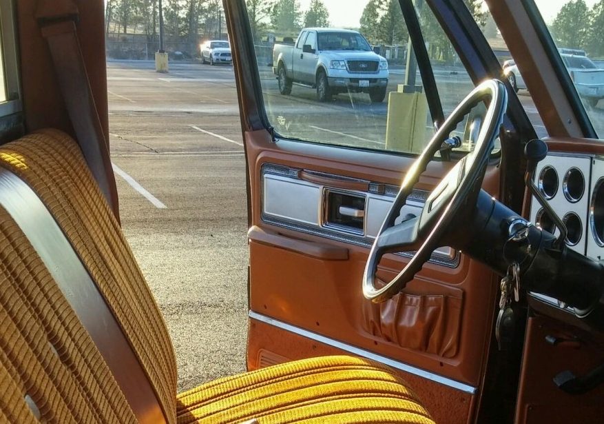I’ve got a ’79 GMC K-1500 with the Sierra Grande trim. I opted out of the fancier trim because I figured a color-keyed floormat was a lot easier to keep clean than carpet. But I still got A-C, cruise and pulse wipers. Interesting that the brown/neutral color scheme was so popular for about four years. Mine is the same as this except for the roof color.