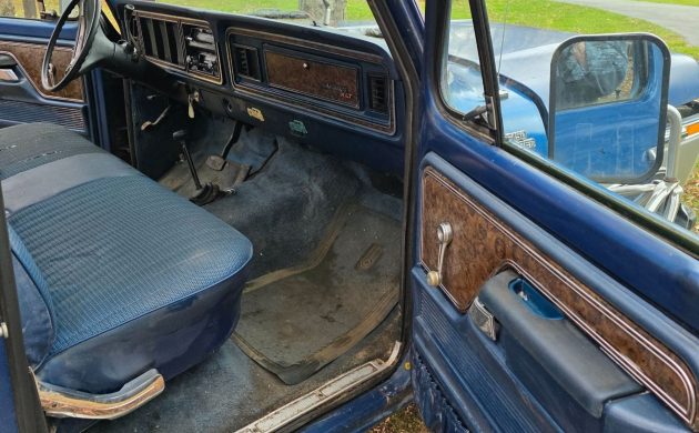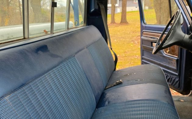 Had an almost identical one to this, only a SuperCab version, bought from the original owner. F250 4WD, same color, same interior. Had a 351M (I think). Unfortunately, it did not fare as well as this one, and the guy who bought it from me about 10 years ago (after advertising it on eBay for nearly 3 years – and at ever decreasing prices) bought it more or less only for the front axle. Good workhorse truck, trailered SOOO many cars with that truck, but the rustworm so prevalent here in Ohio really got to it.
